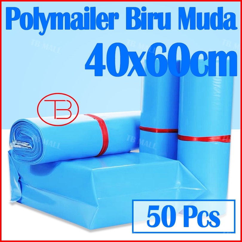 Fumu Kantong Plastik Polymailer Olshop Plastik Packing Biru Muda 40x60cm Isi 50pcs Lem Perekat