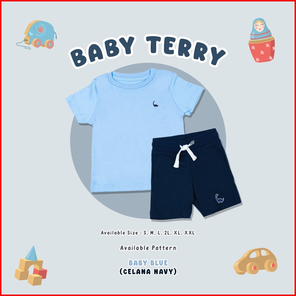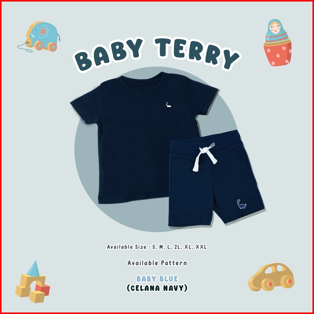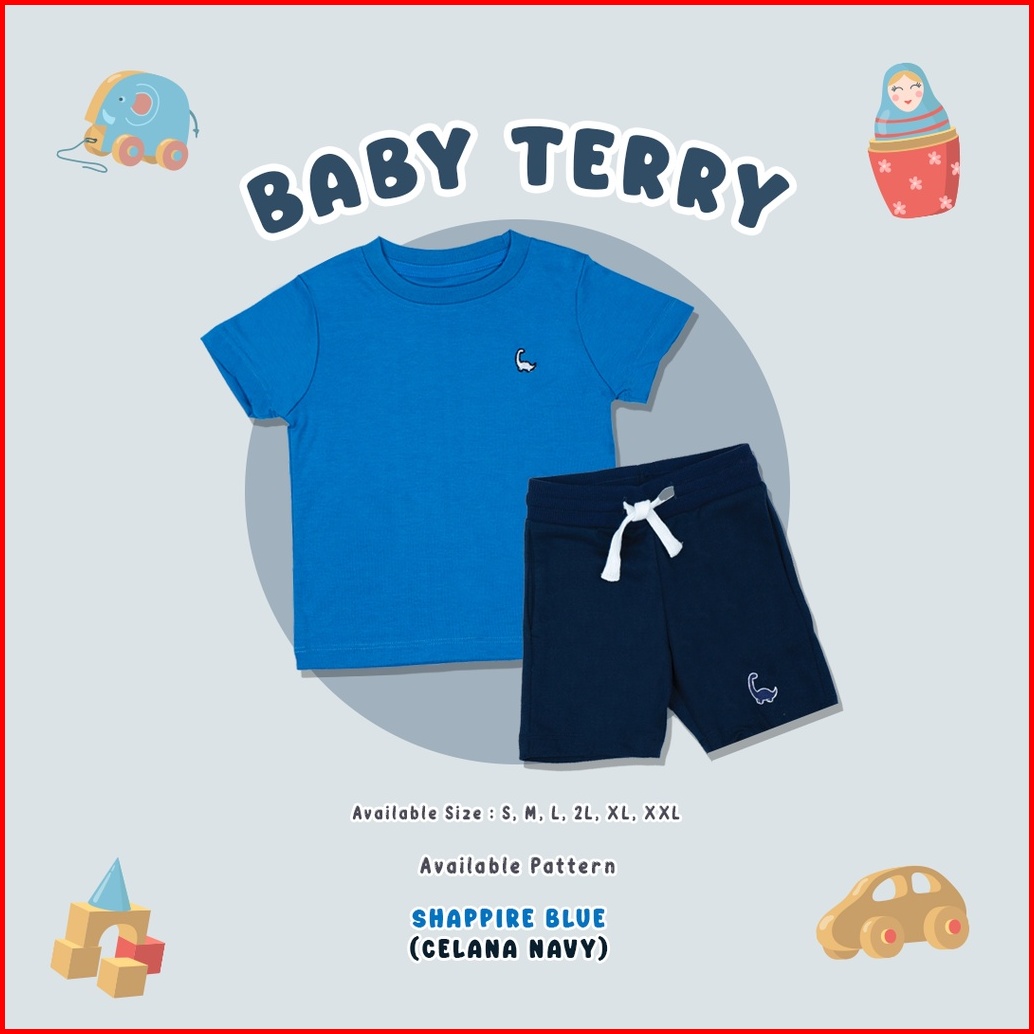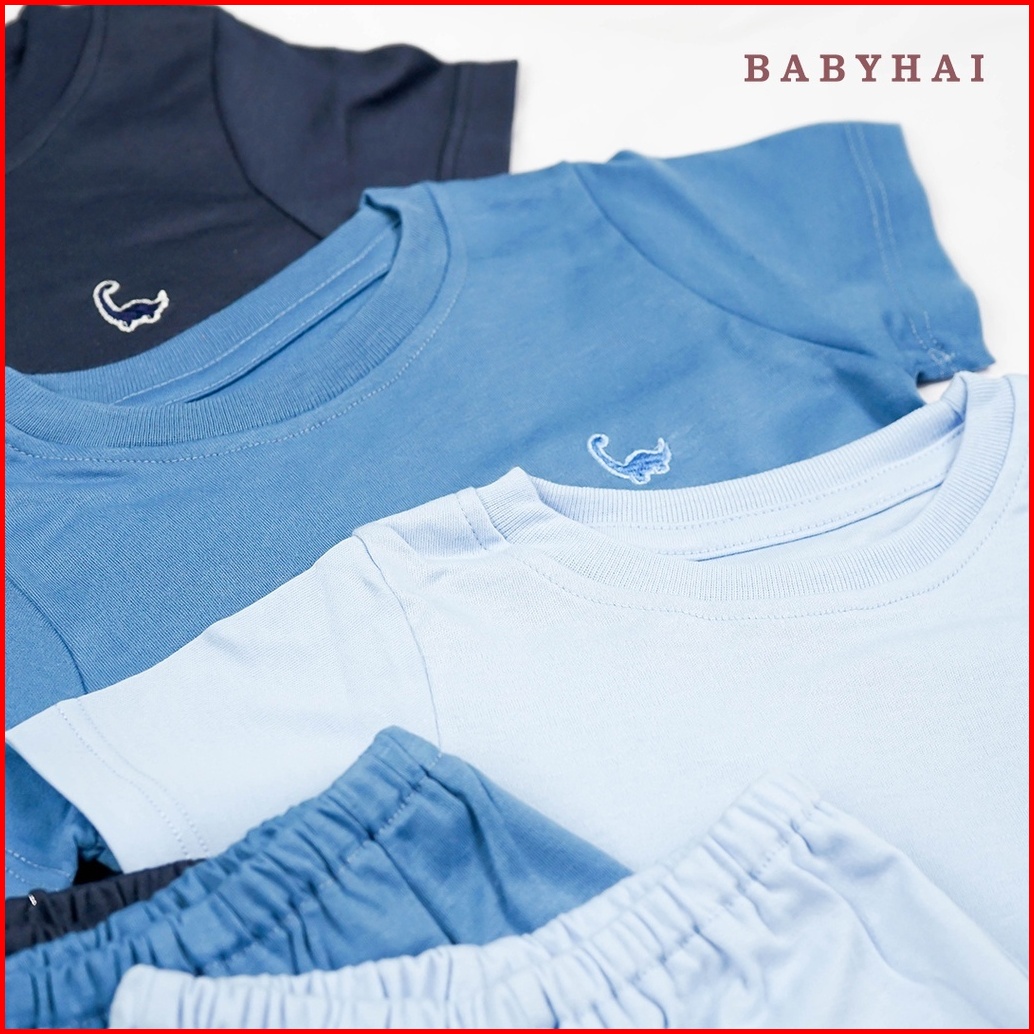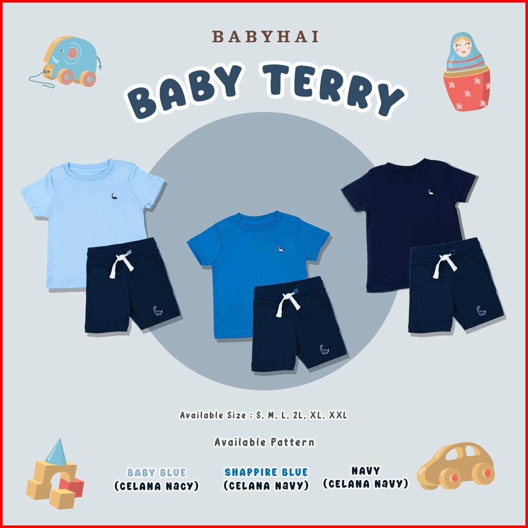 Baby Hai Baby Terry - Setelan Baju Pendek Celana Pendek - Seri Biru