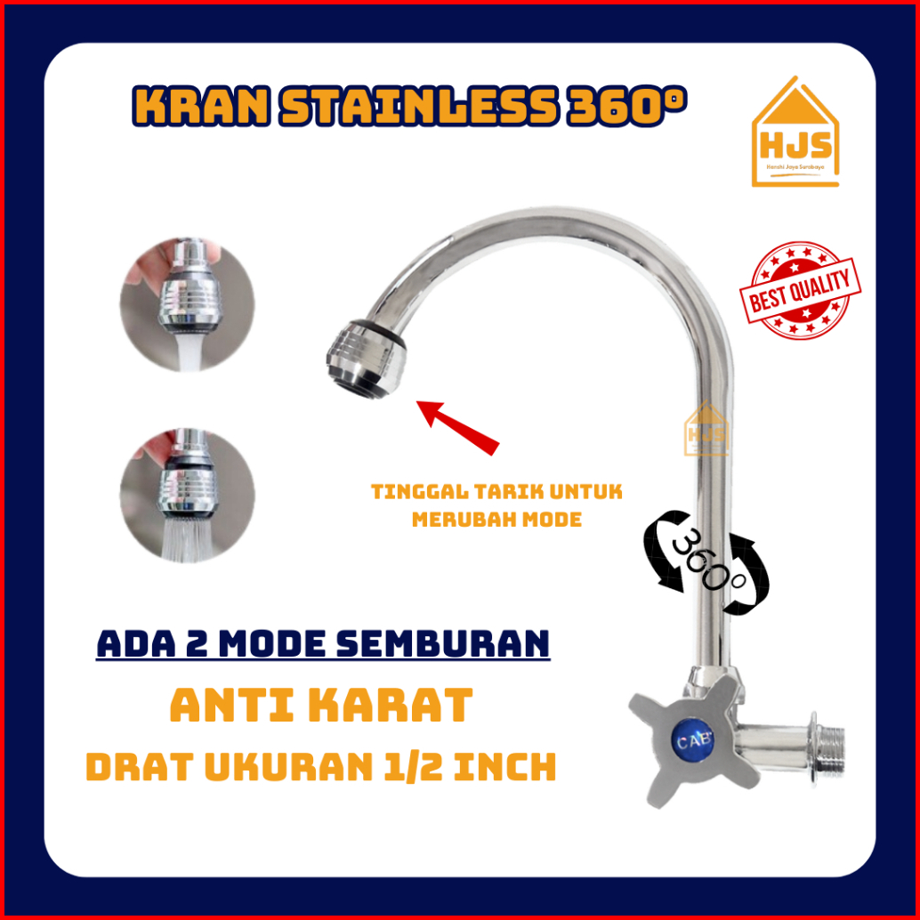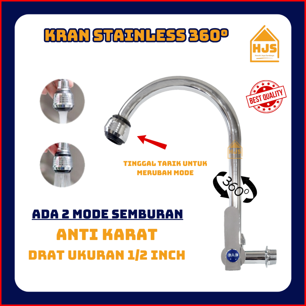 Keran Air Angsa 2 Mode Kepala Kecil - Keran Cuci Piring Angsa Stainless - Kran Sink Dapur Drat 1 2 Inch Kran Angsa Dapur