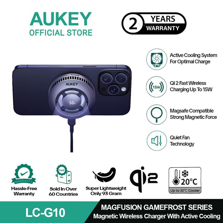 AUKEY Qi2 Magnetic Gaming Wireless Charger 15W With Active Cooling LC-G10