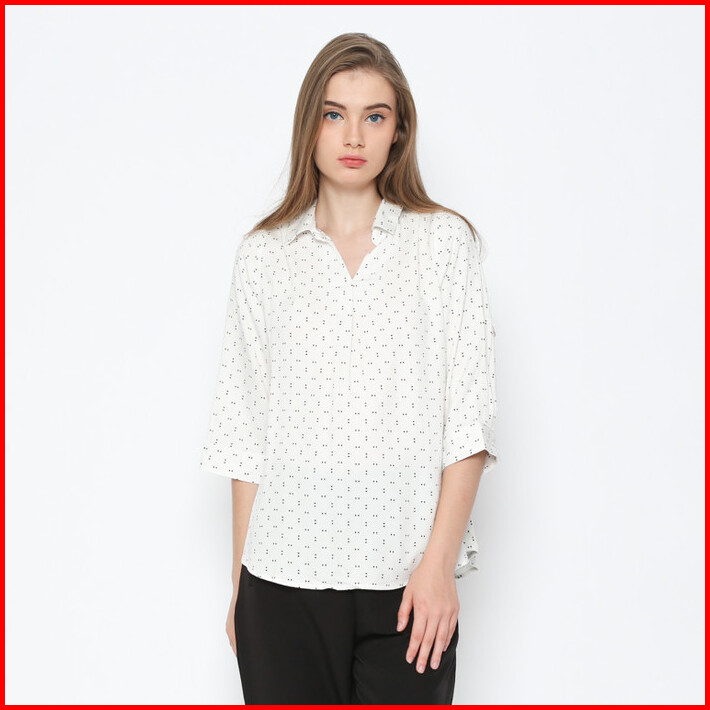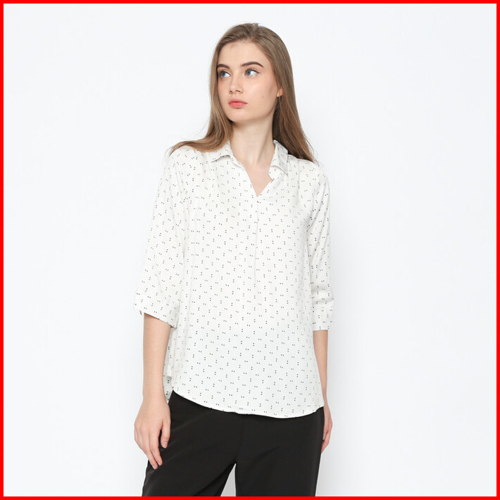 Valino Ladies Blouse V Neck Putih Motif Wanita - D-ckfa13-n5