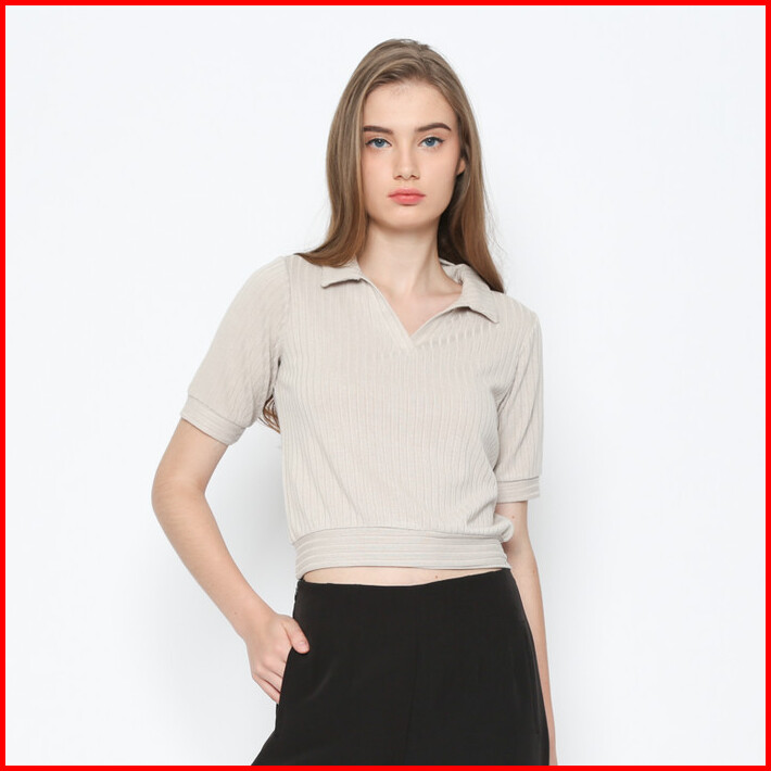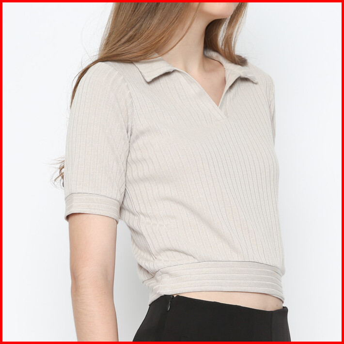 Valino Ladies Polo Knit Lengan Pendek Cream Wanita - D-cjgf13-c5