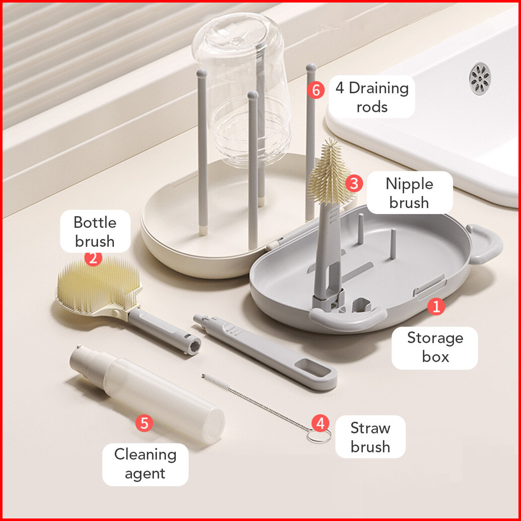 Sakumini 6in1 Travelling Bottle Brush Kit Sikat Pembersih Botol Dot Sedotan Multifungsi