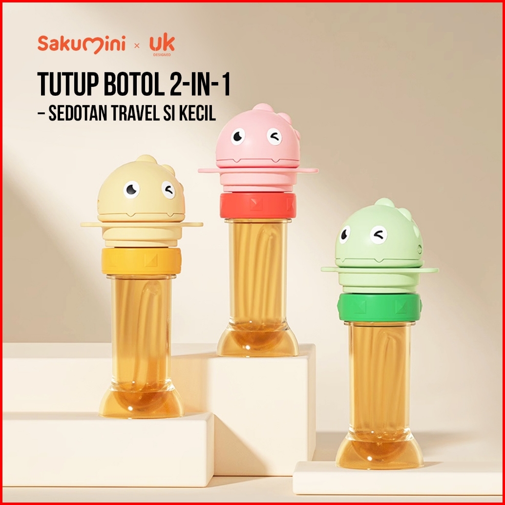 Sakumini 2in1 Travelling Portable Cover Straw Dino Tutup Botol Sedotan Anak