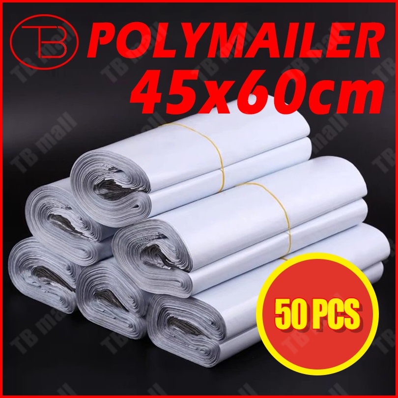 Fumu Polymailer Putih 45x60cm Plastik Packing Olshop 50pcs Lem Perekat Kuat Premium Glossy Termurah
