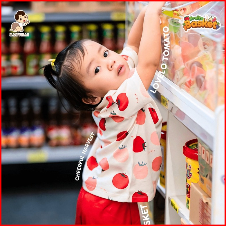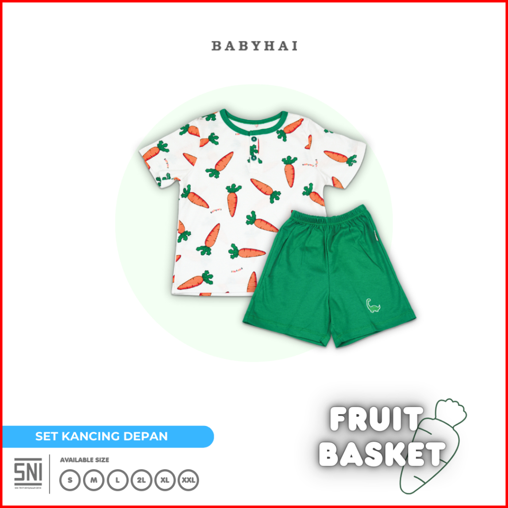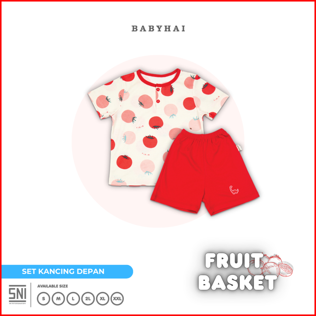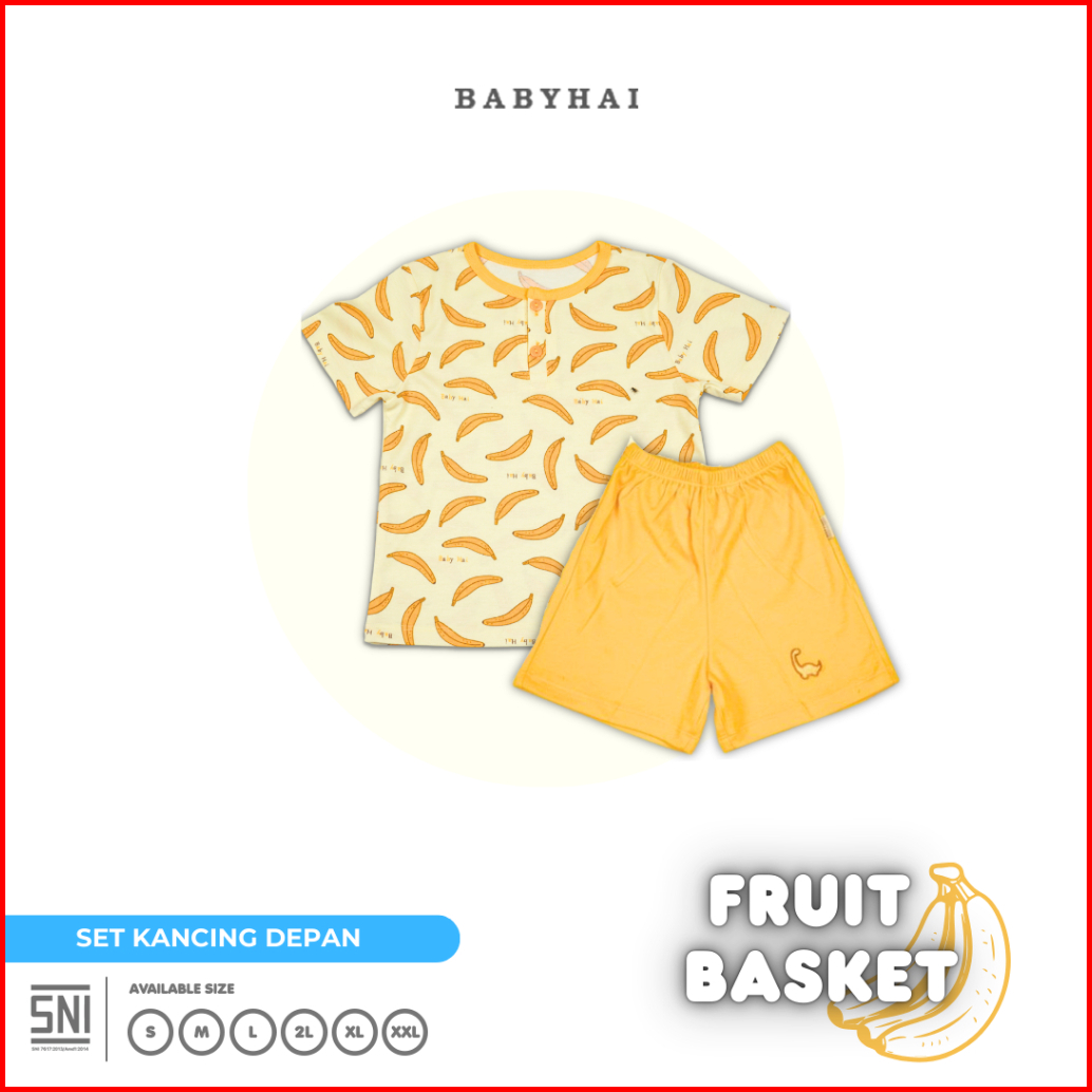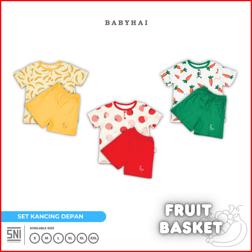 Baby Hai Fruit Basket - Setelan Kancing Depan Baju Pendek Celana Pendek Bayi