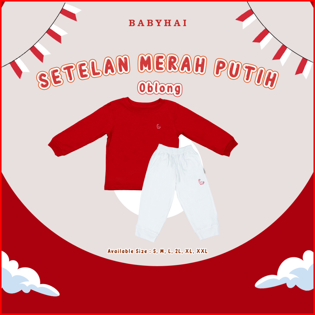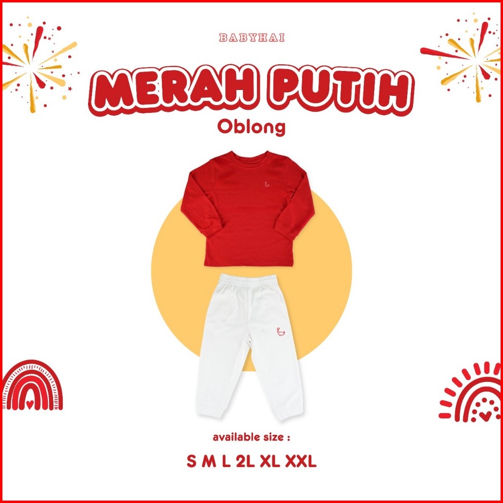 Baby Hai Setelan Merah Putih Oblong - Baju Panjang Celana Panjang