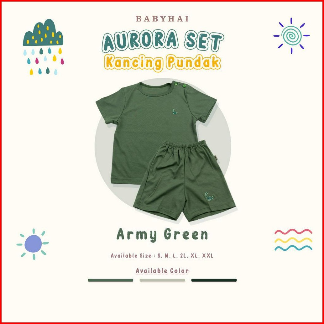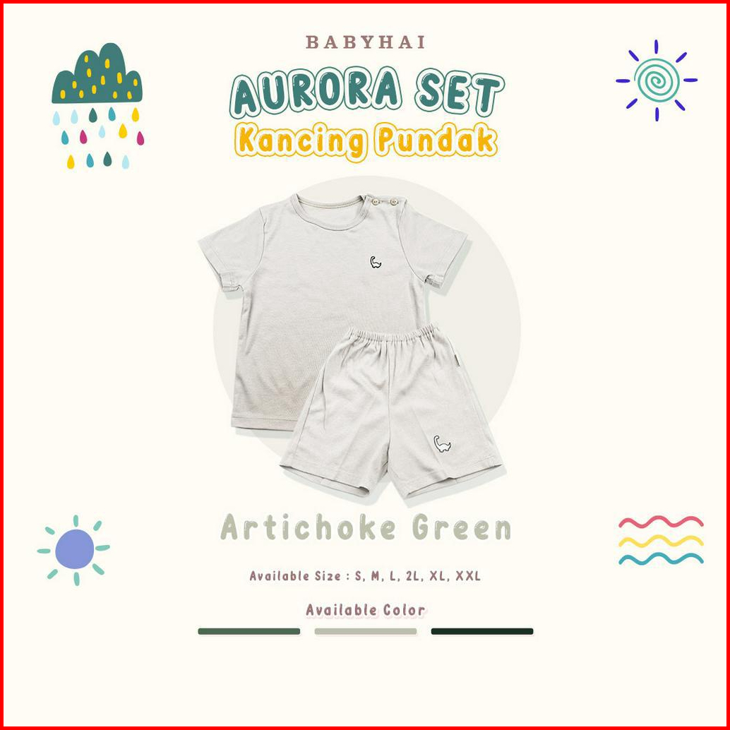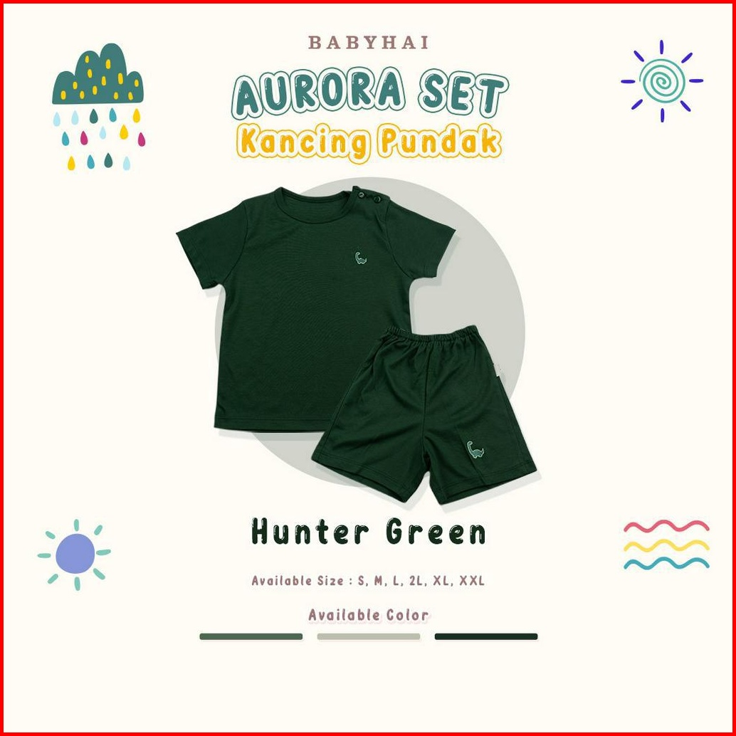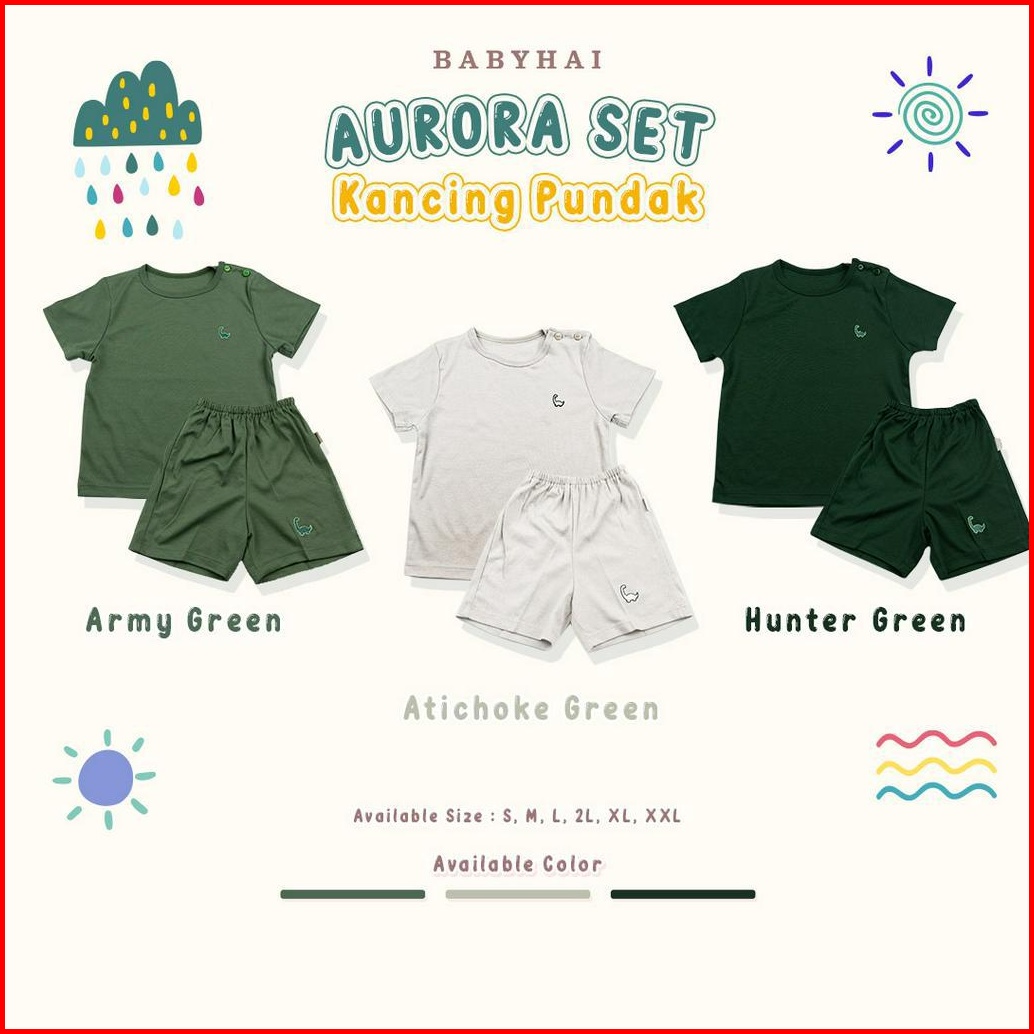 Baby Hai Aurora Set - Setelan Kancing Pundak Polos Baju Pendek Celana Pendek - Seri Hijau