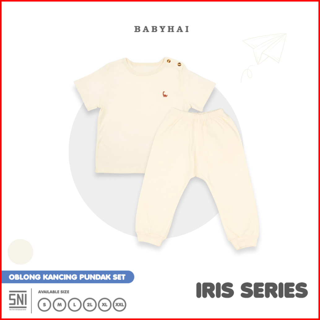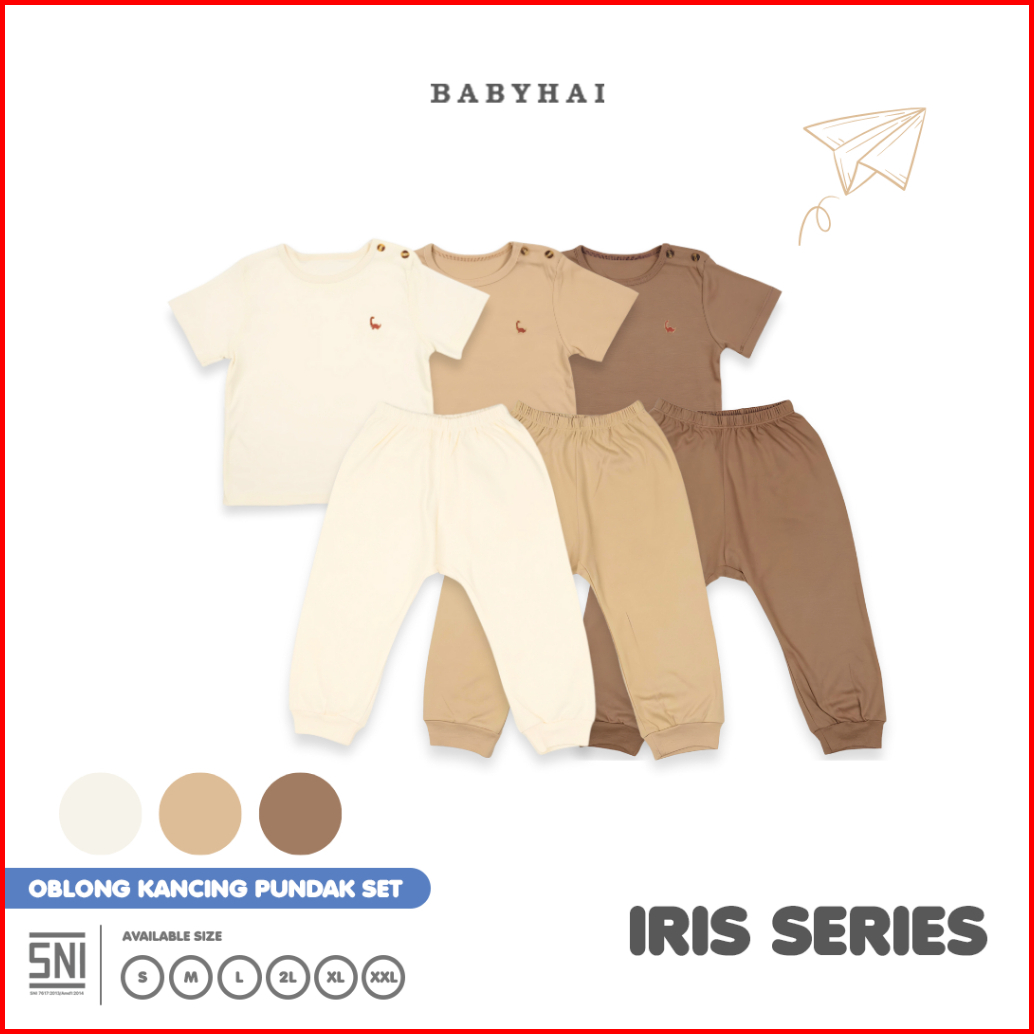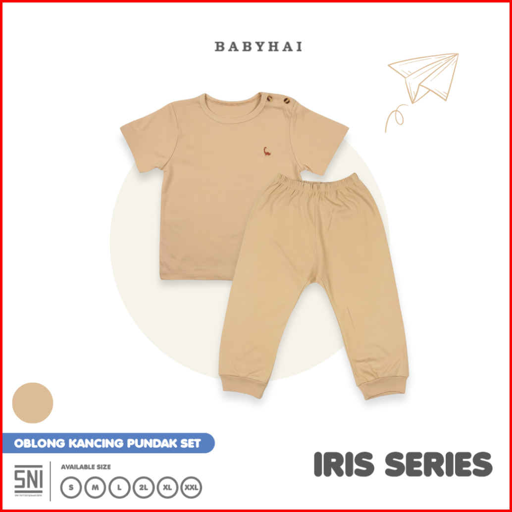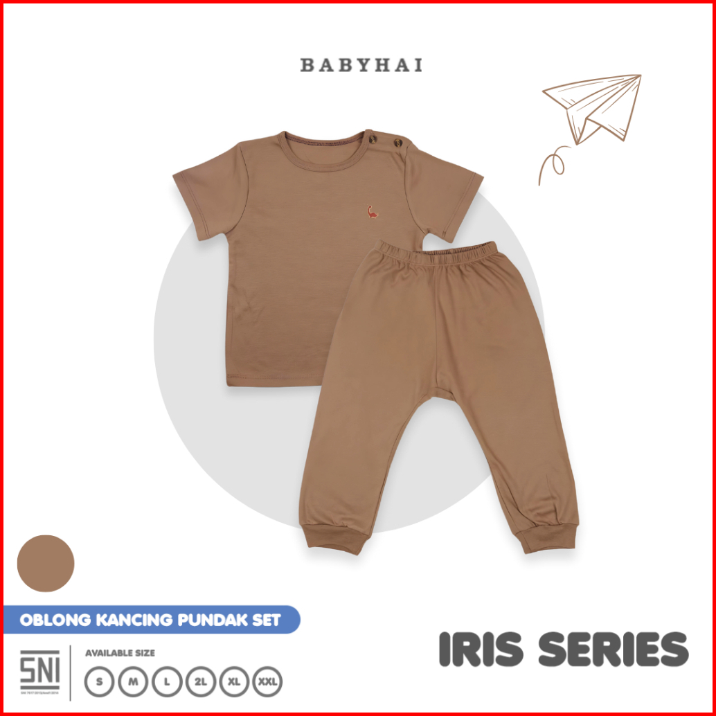 Baby Hai Iris Set - Setelan Kancing Pundak Polos Baju Pendek Celana Panjang - Seri Coklat