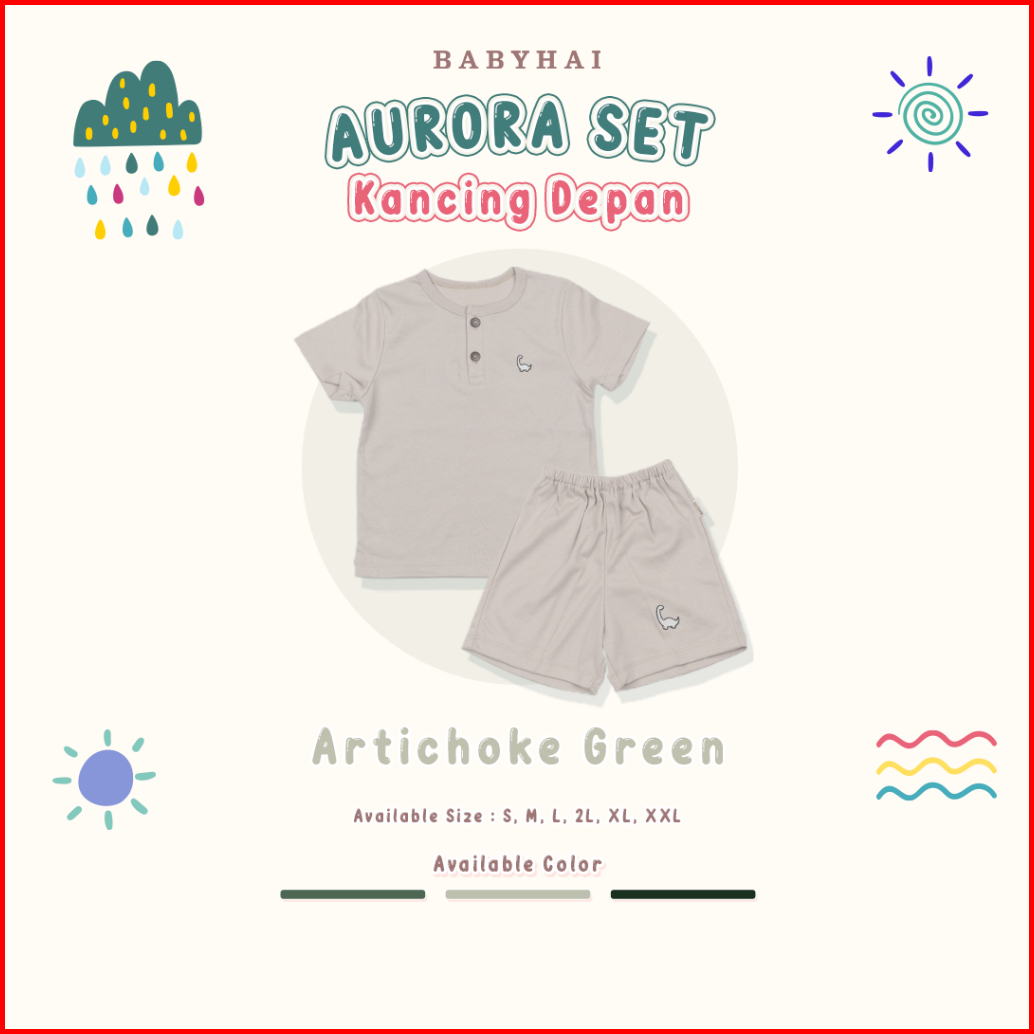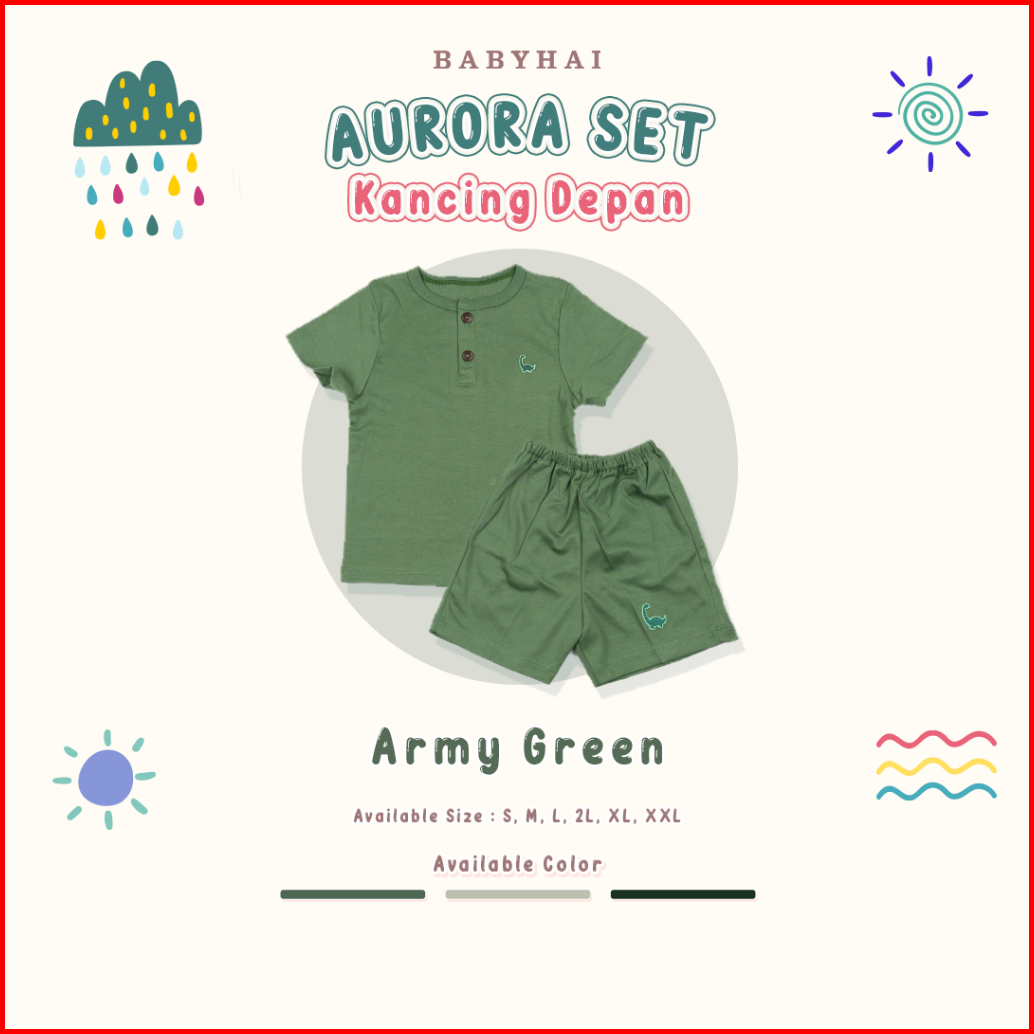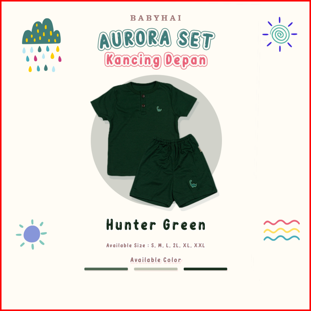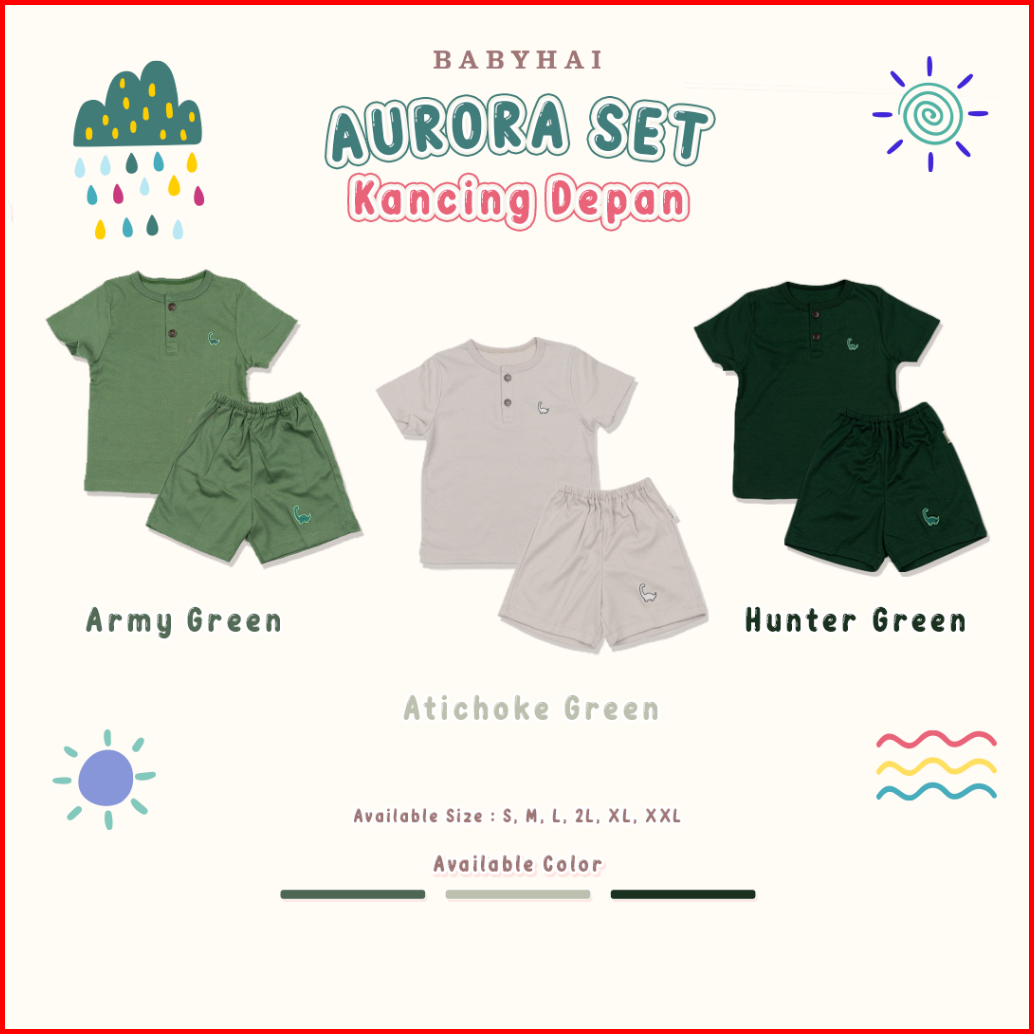 Baby Hai Aurora Set - Setelan Kancing Depan Polos Baju Pendek Celana Pendek - Seri Hijau
