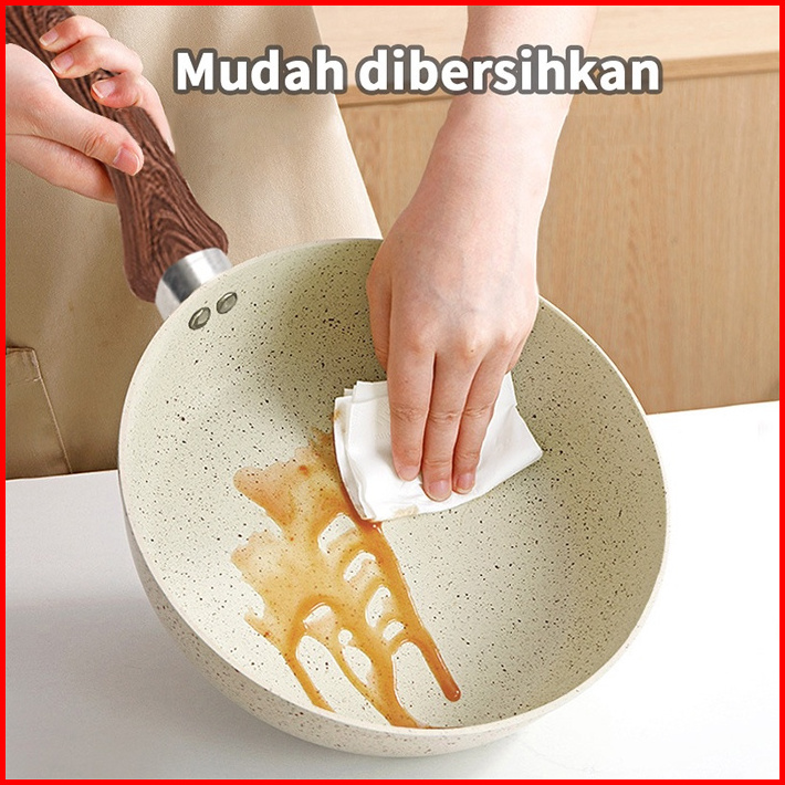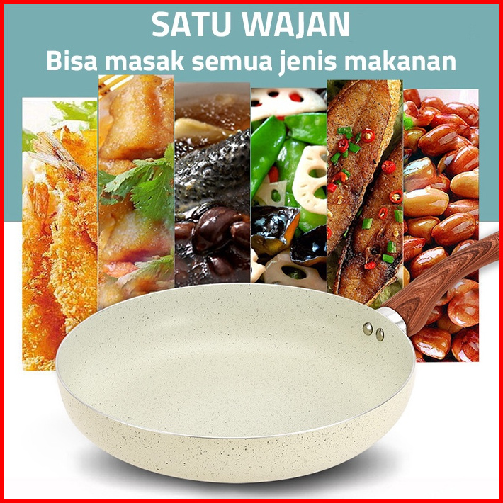 Gm Bear Wajan Penggorengan Marble Coating 20cm Beige 1812 - Wajan Fry Pan Marble Coating