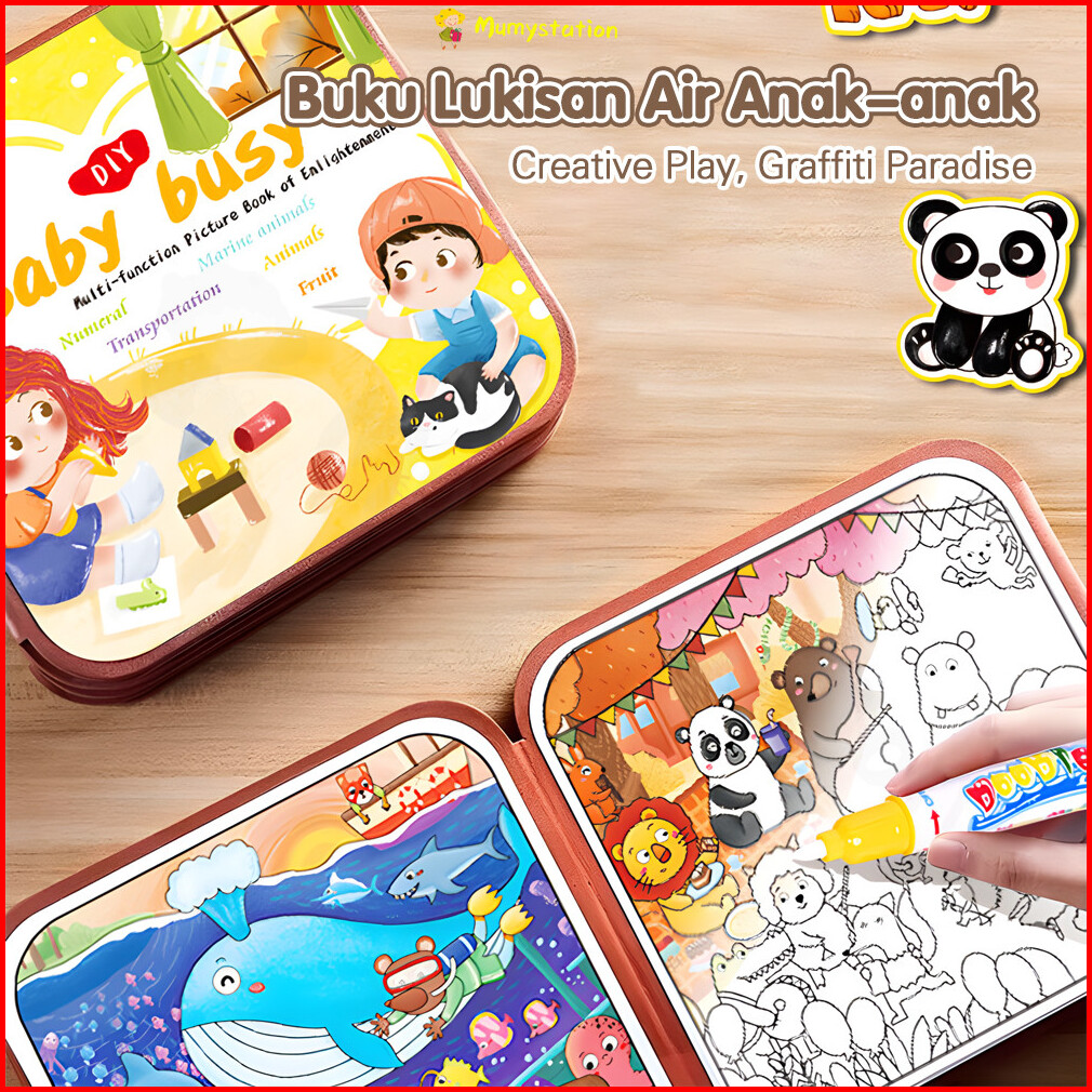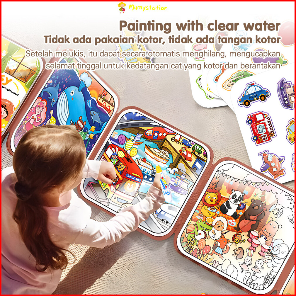 Mumystation Diy 2in1 Magic Water Painting Book Mewarnai Anak Quiet Book Buku Busy Book Lucu