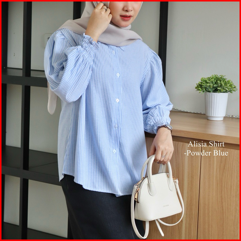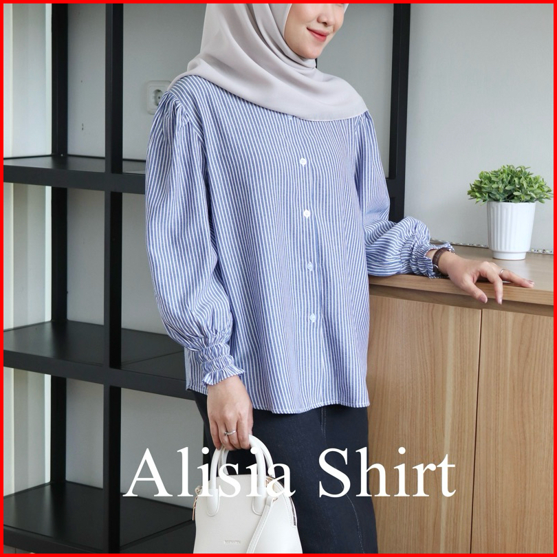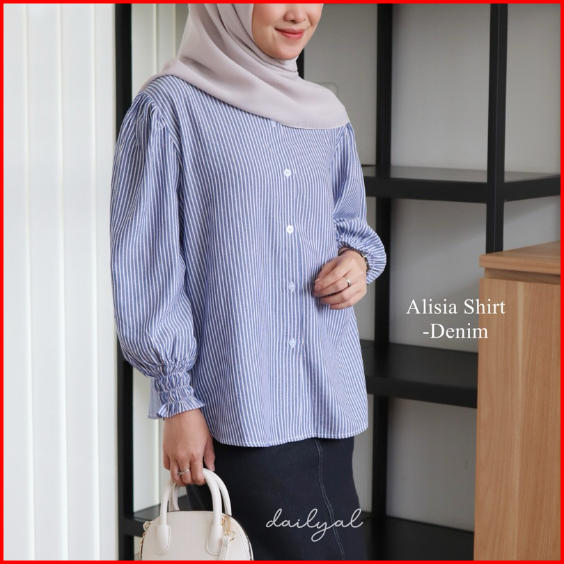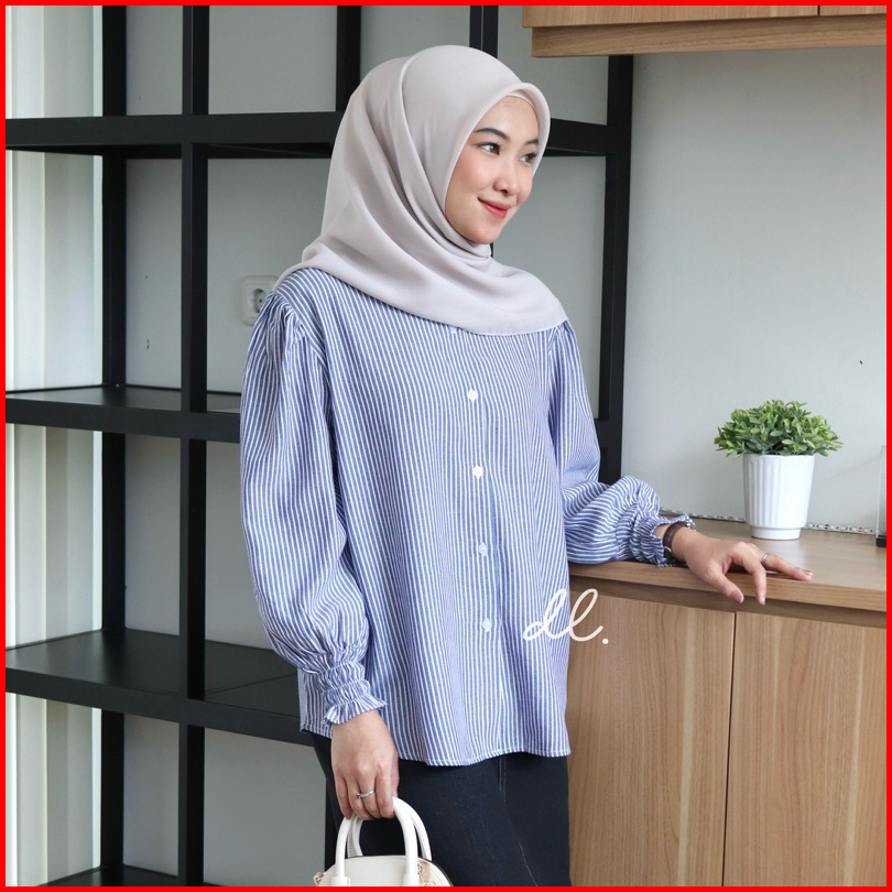 Dailyal - Alisia Stripes Kemeja Salur Tangan Karet