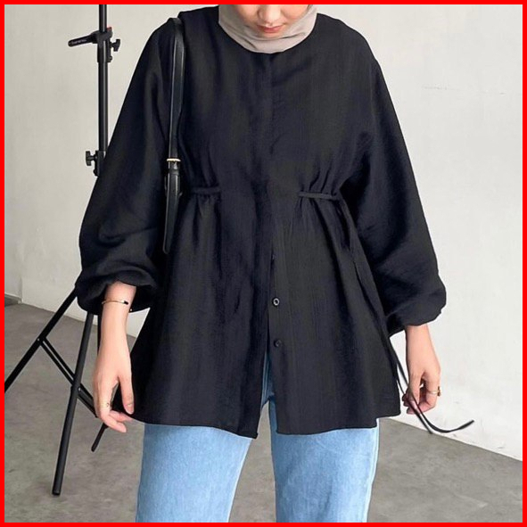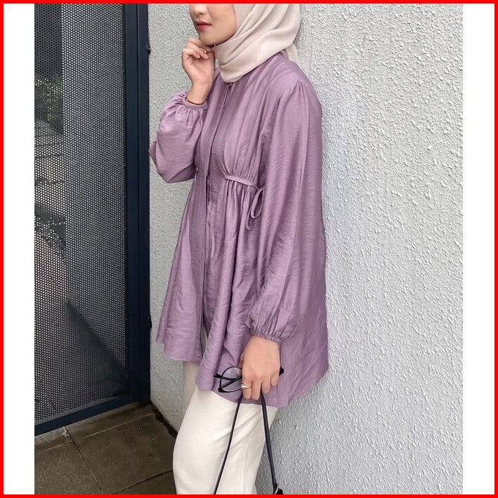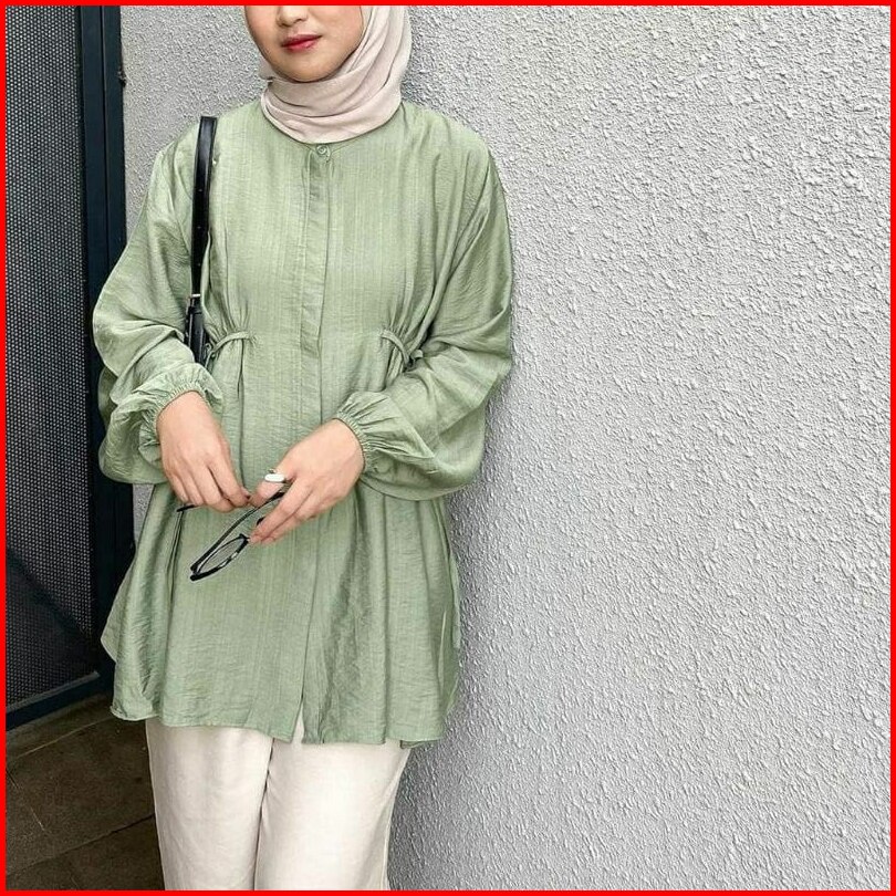 Alesa Blouse Kemeja Wanita Korean Style Semi Tunik Polo Linen