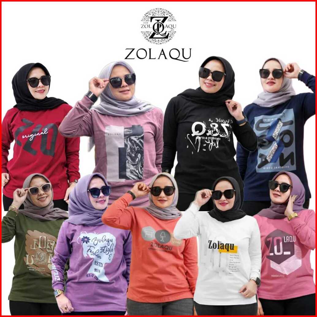 Kaos Wanita Zolaqu Original Lengan Panjang Cotton Combed 24s Full Size M-l-xl-xxl-xxxl Seragaman