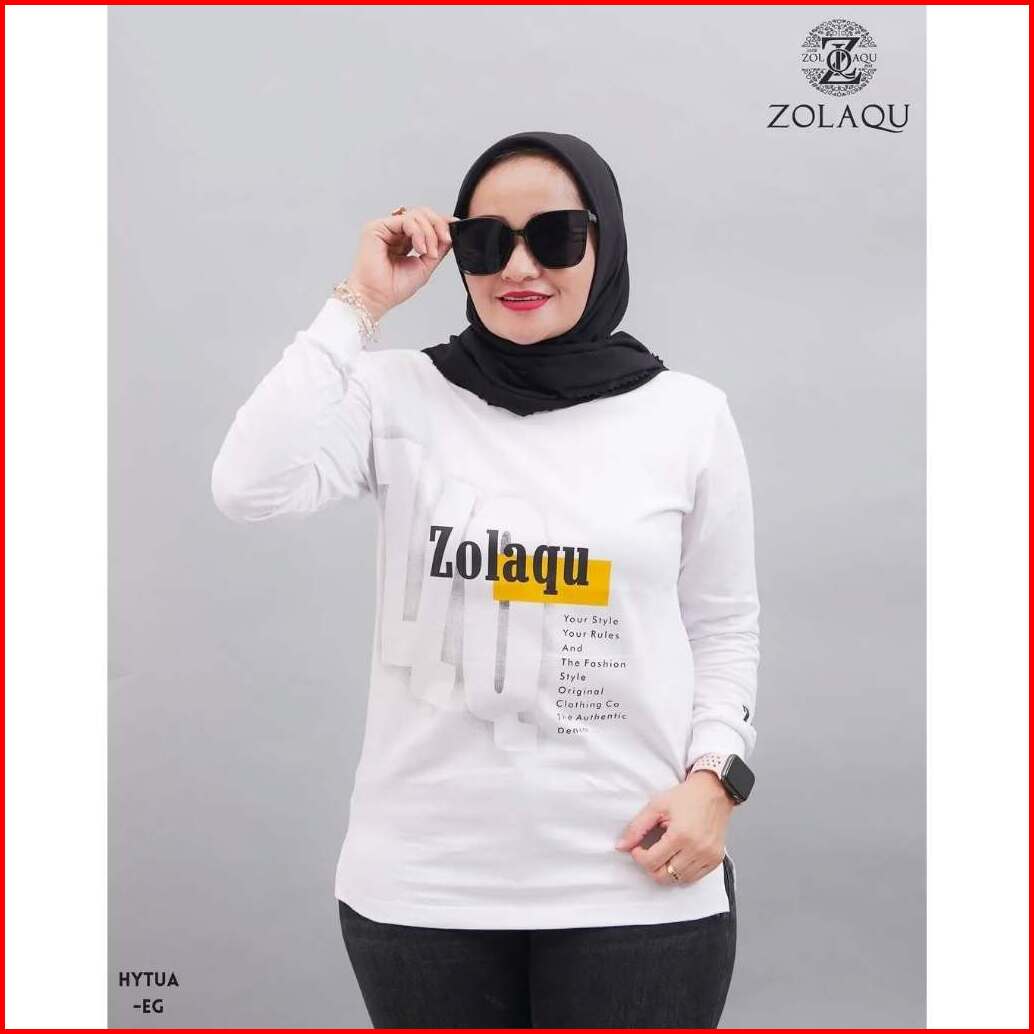 Atasan Kaos Wanita Zolaqu Original Lengan Panjang Cotton Combed 24s Full Size Jumbo Terlaris