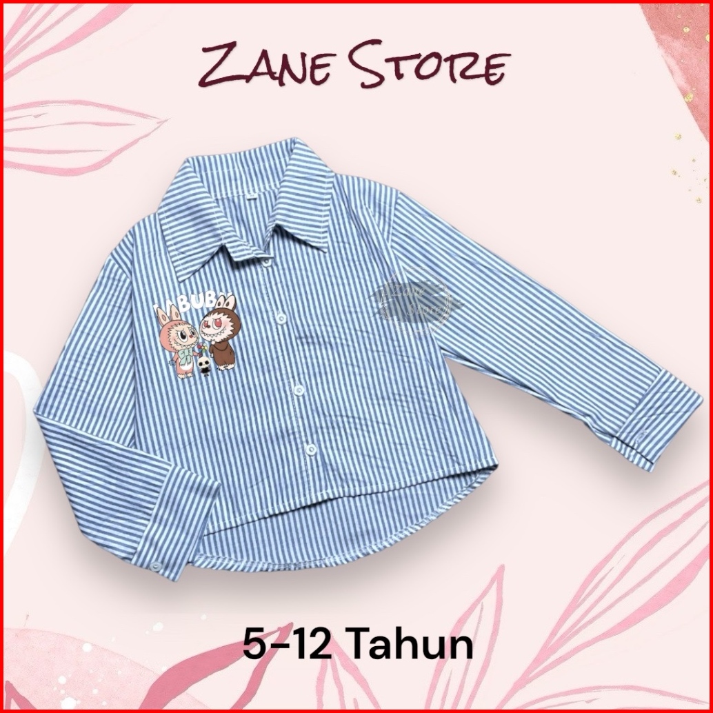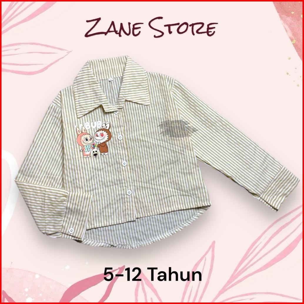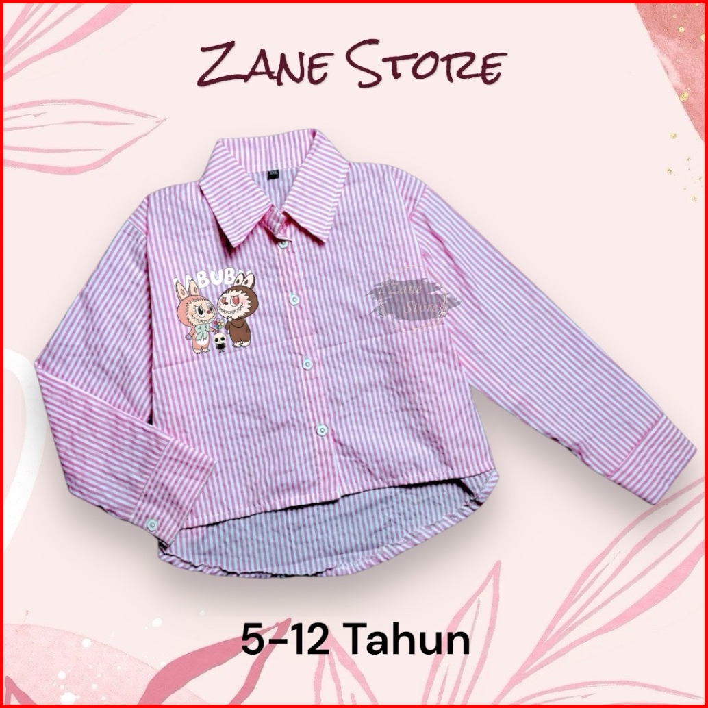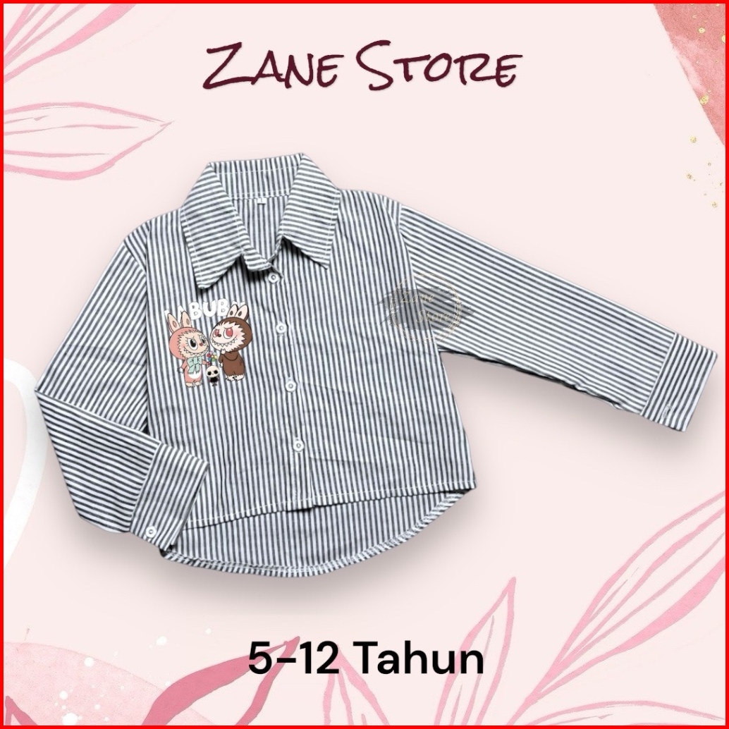 Zane Store - Blouse Kemeja Atasan Labubu 5-14 Tahun Katun Salur Atasan Anak Perempuan Viral Ootd Terbaru Lebaran