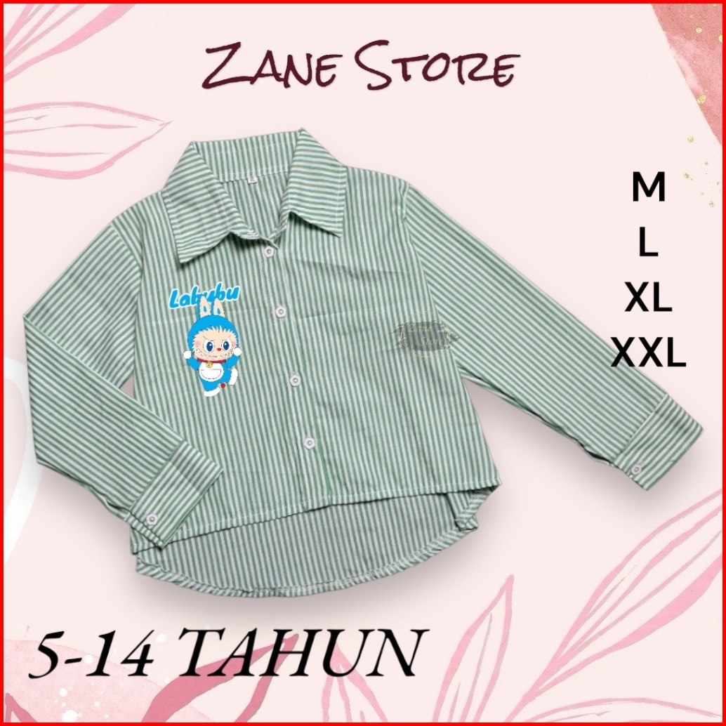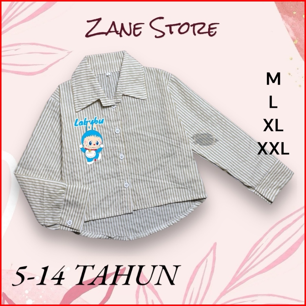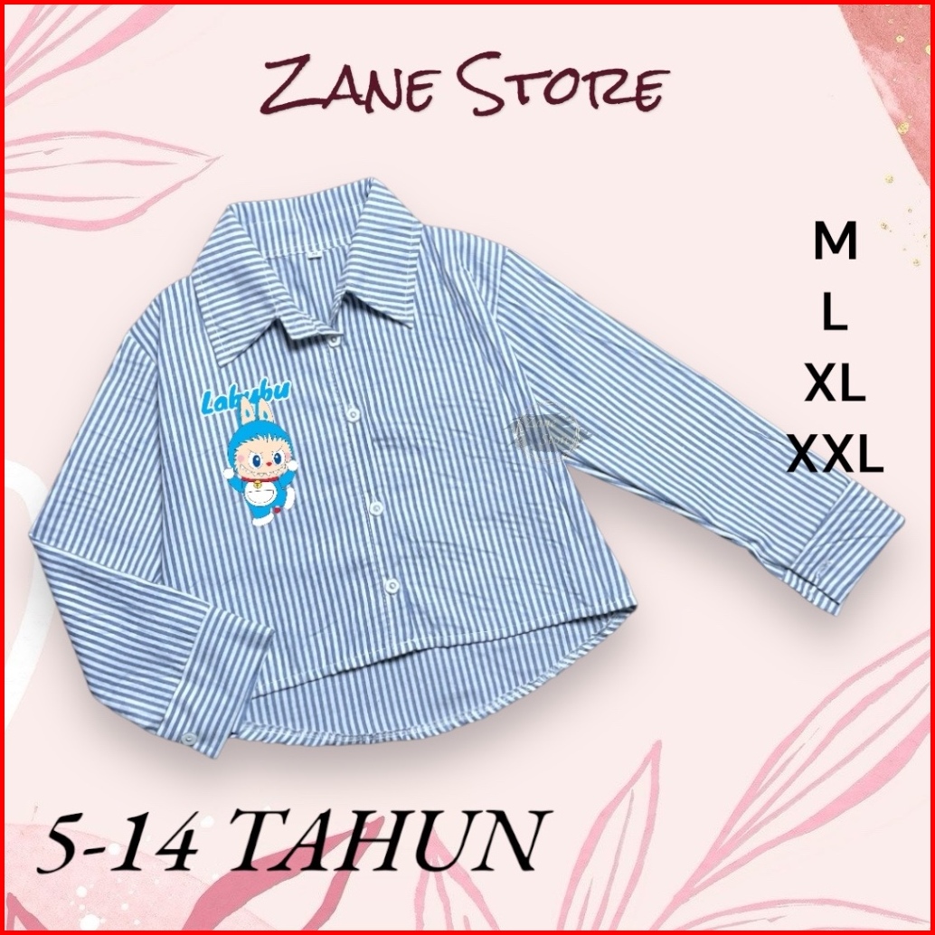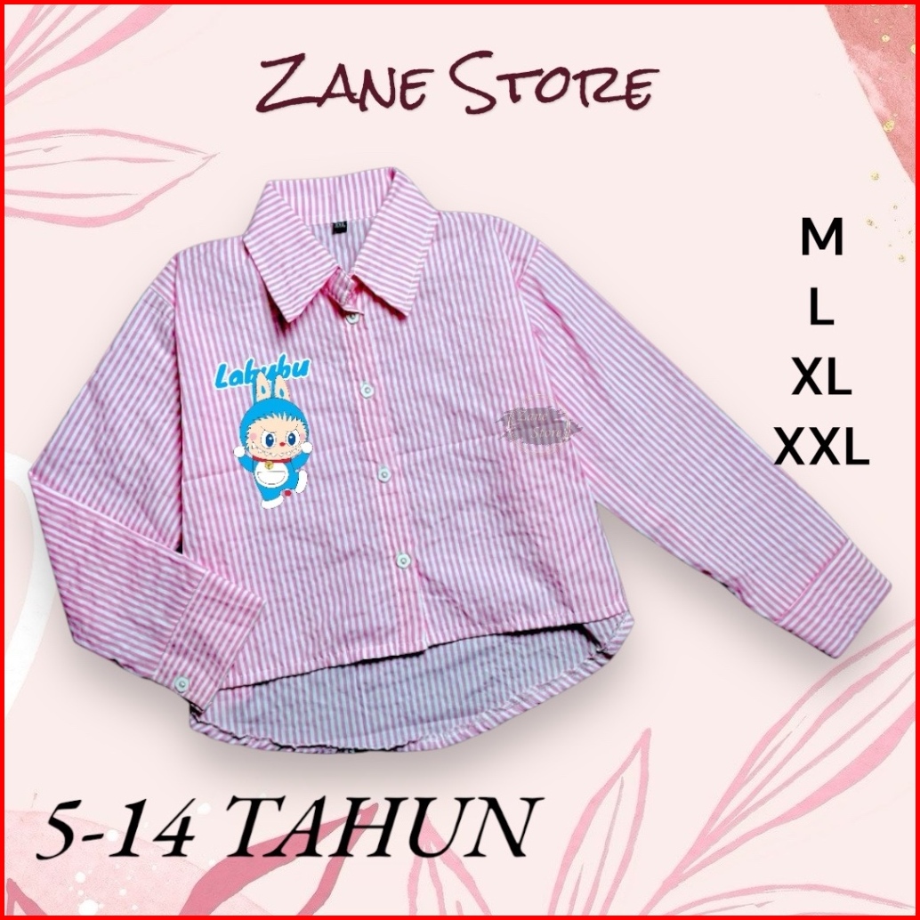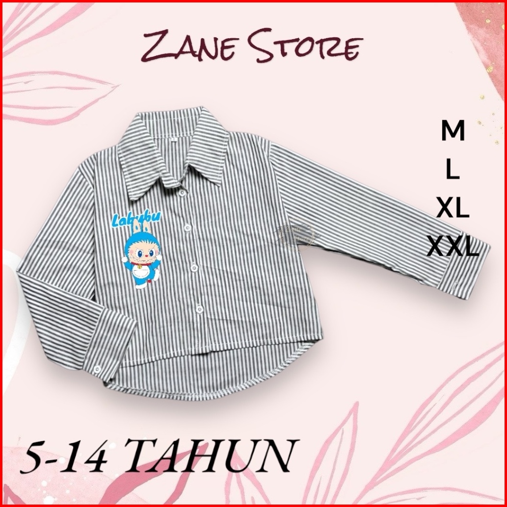 Zane Store - Blouse Kemeja Atasan Labubu Doraemon 5-14 Tahun Katun Salur Atasan Anak Perempuan Viral Ootd Terbaru Lebara
