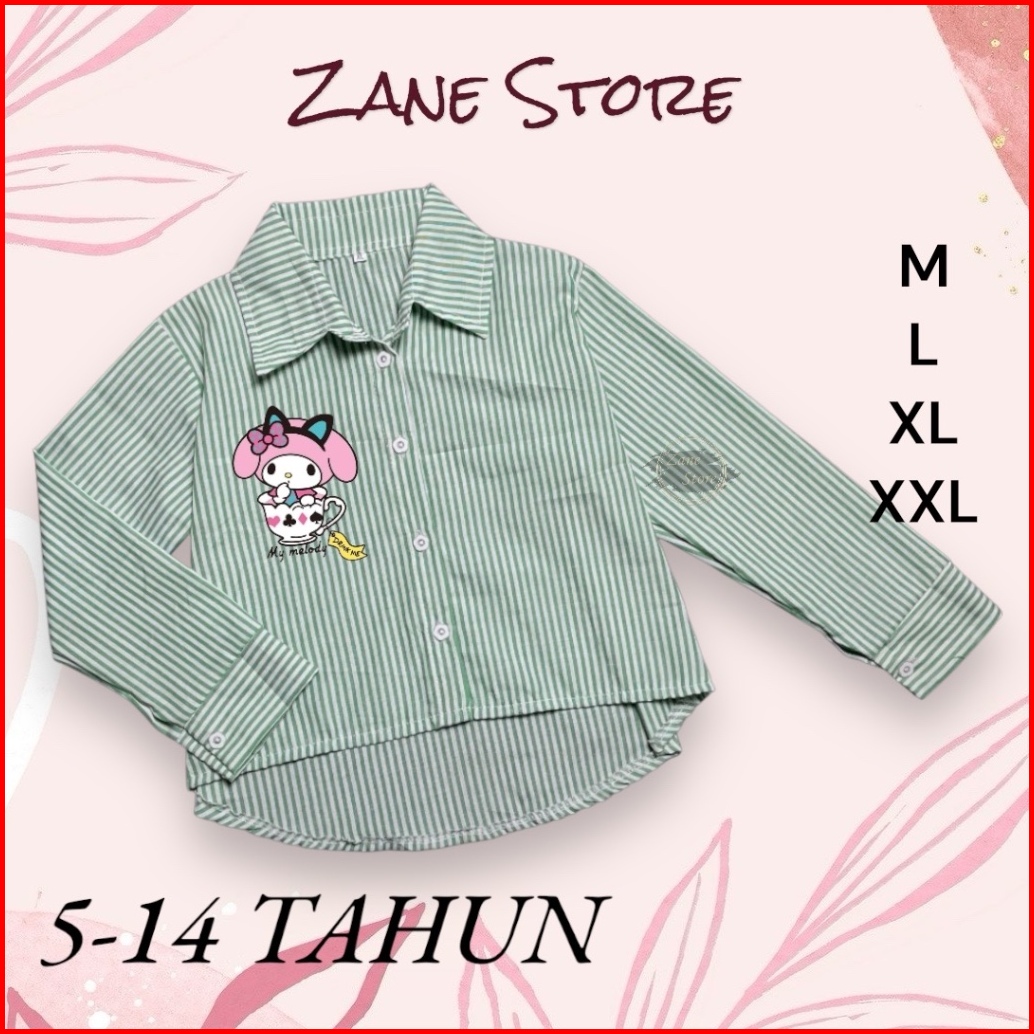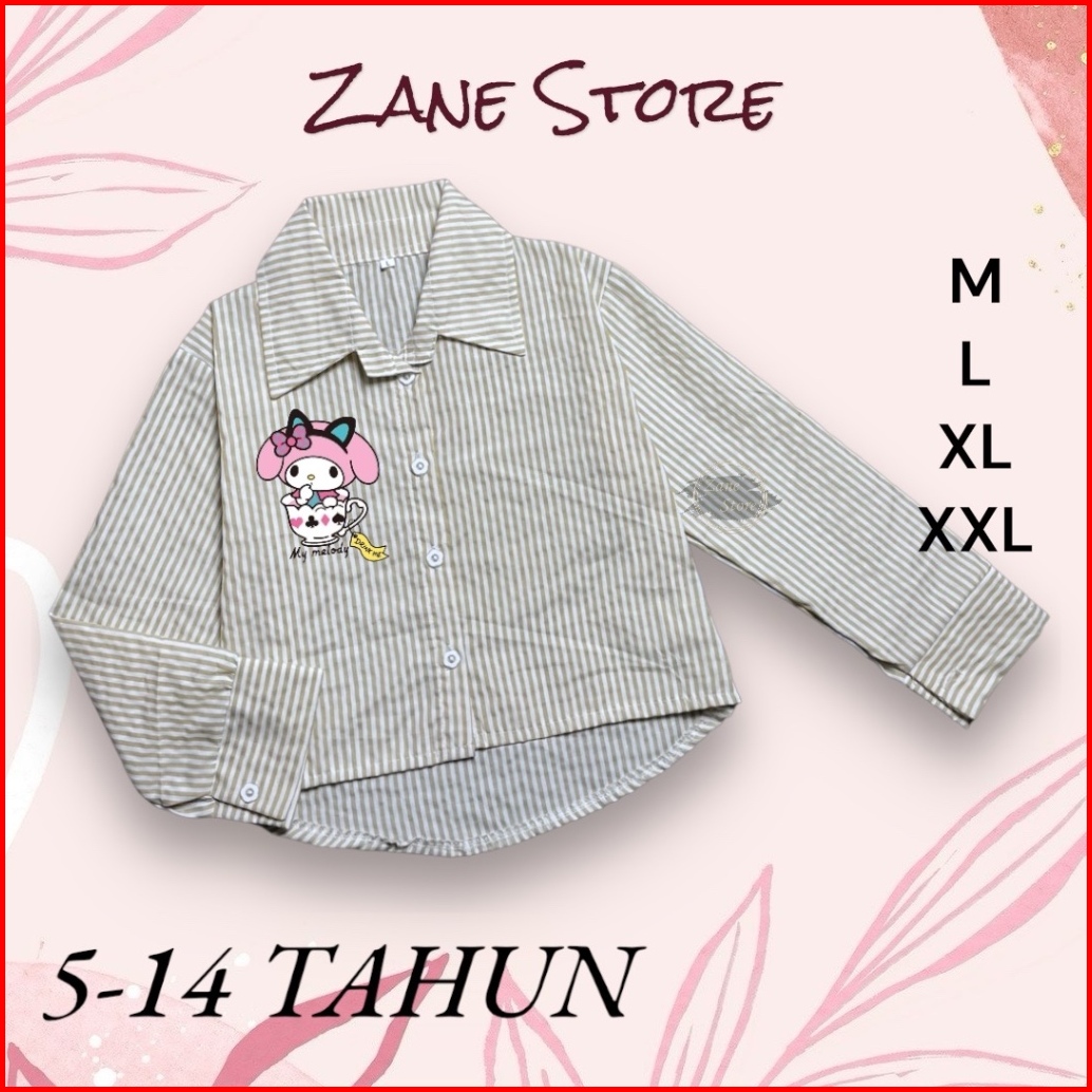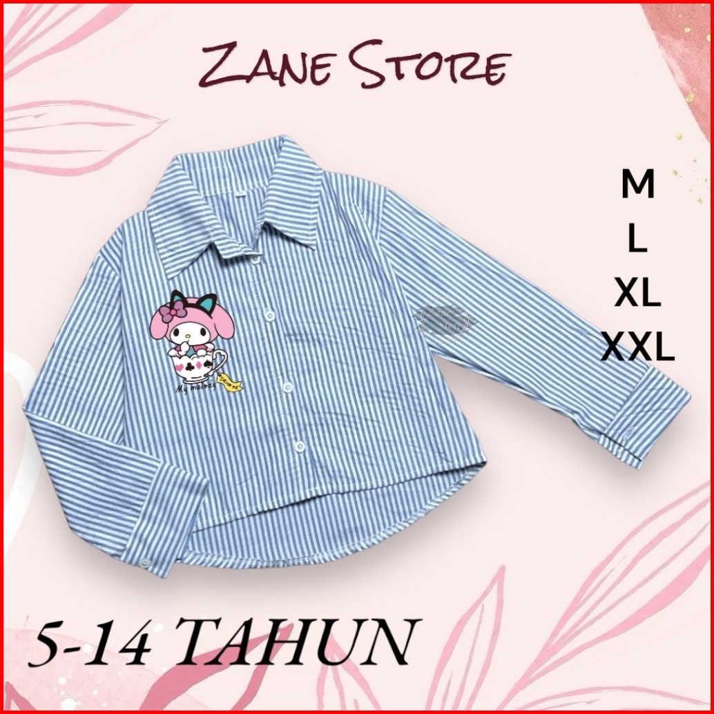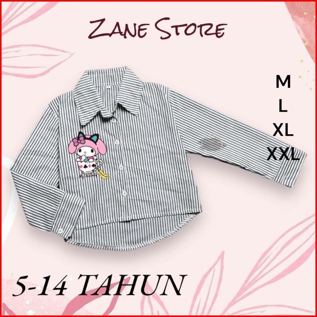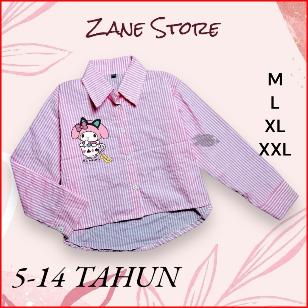 Zane Store - Blouse Kemeja Atasan My Melody 5-14 Tahun Katun Salur Atasan Anak Perempuan Viral Ootd Terbaru Lebaran
