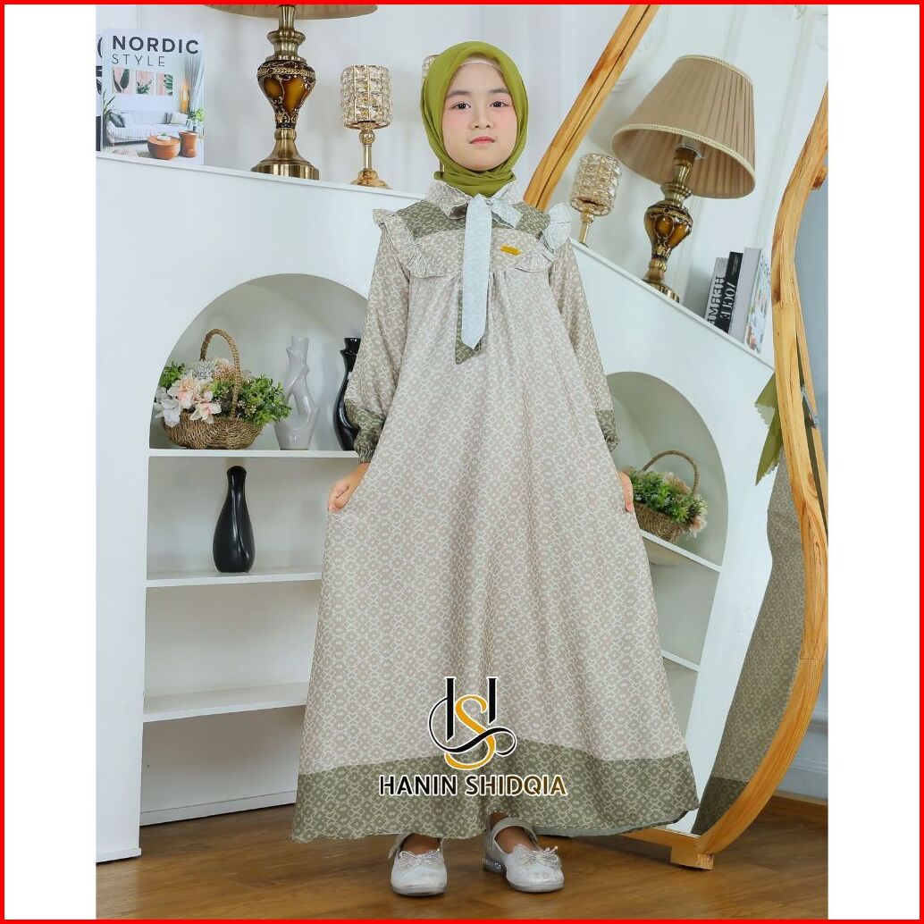Hanin Shidqia - Mahika Dress Anak Premium Bahan Silky Monogram Exclusive Olive Gradasi 4-12 Th