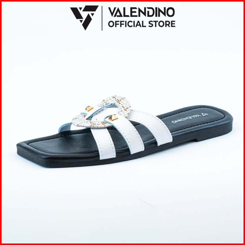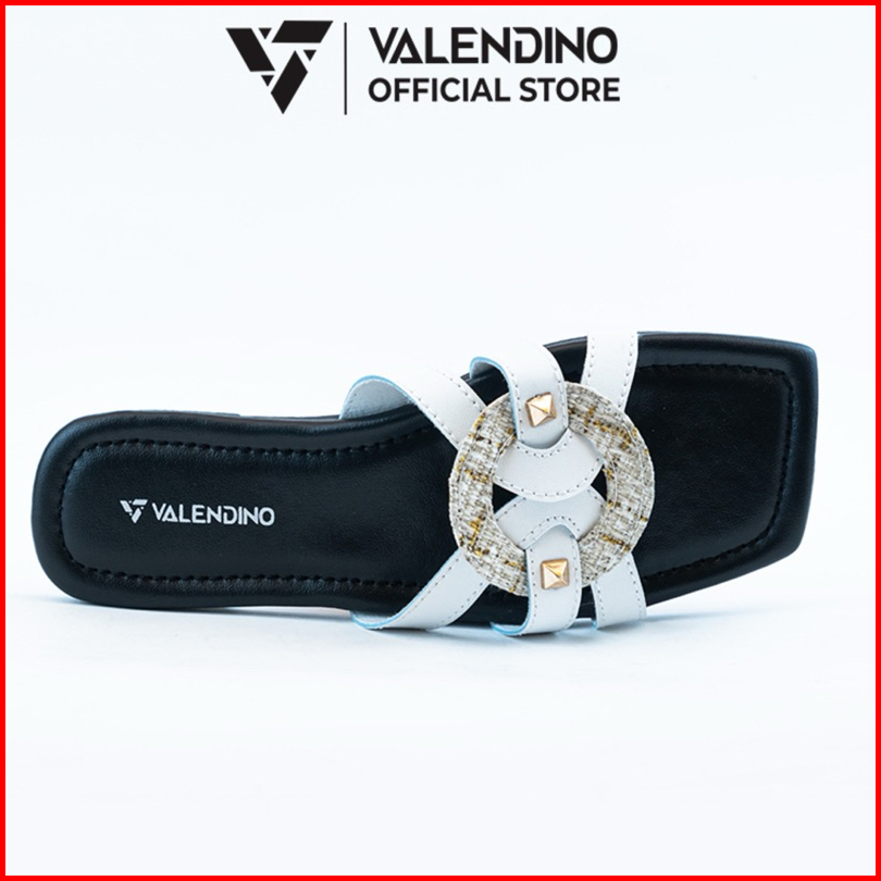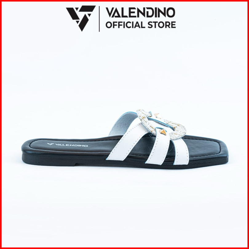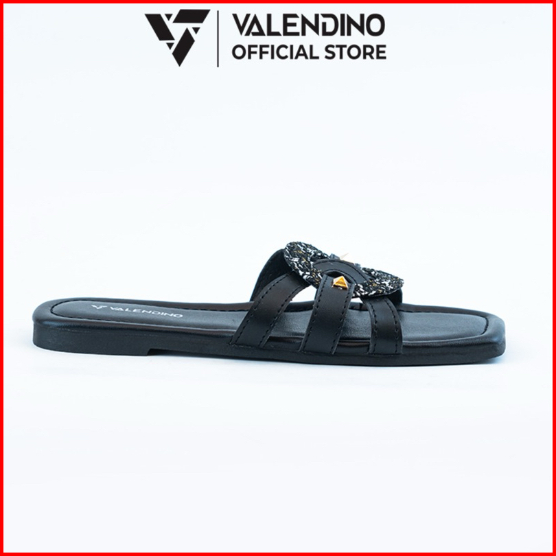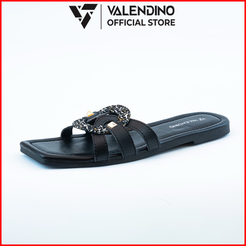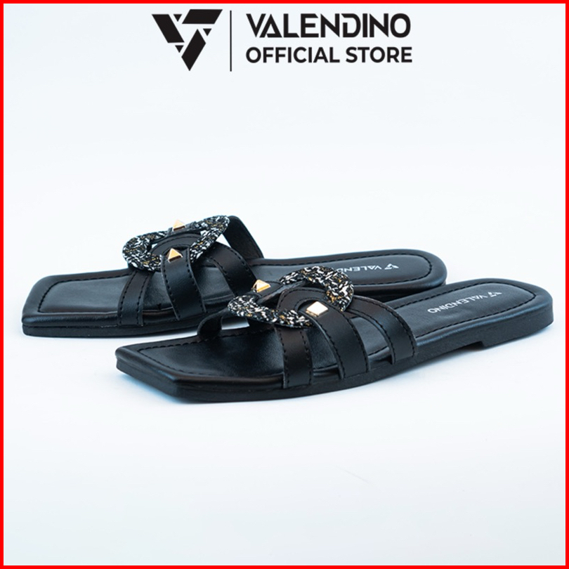 Valendino Sandal Flat Wanita Hak Rendah Three Strap Lingkaran