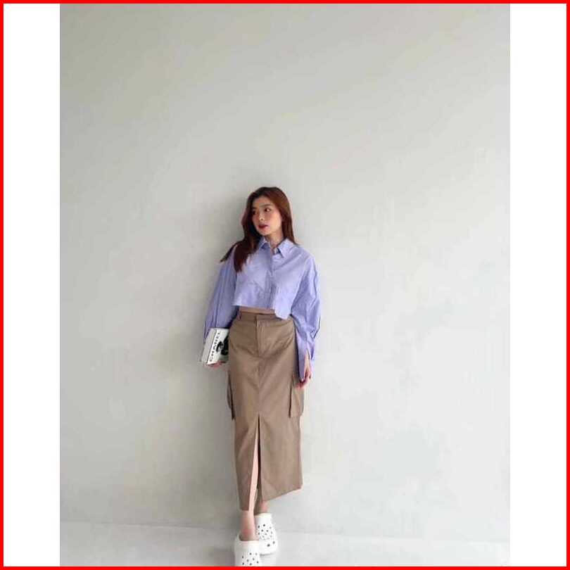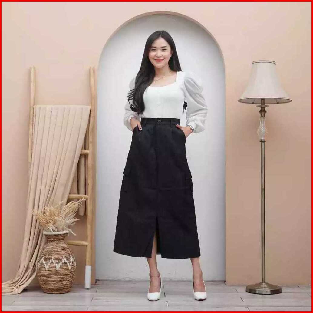 Cargo Skirt Rok Korean Style American Drill Premium Rok Cargo Belah Depan Kekinian