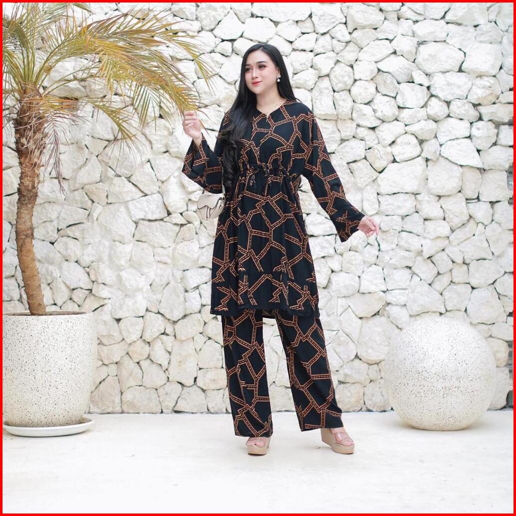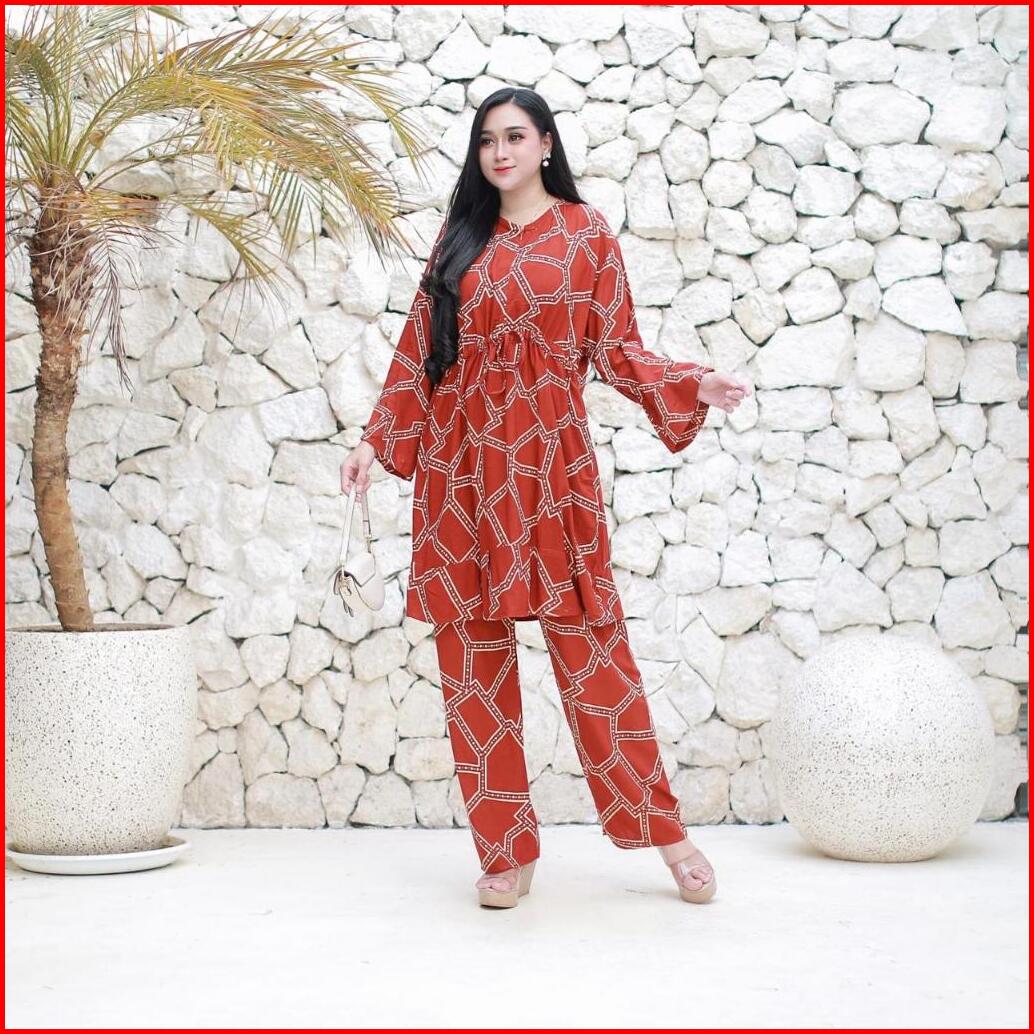 Setelan Tunik Wanita Ukuran Jumbo Ld 120cm Bahan Rayon Motif Terbaru Elegan Dan Trendy Nyaman Dipakai