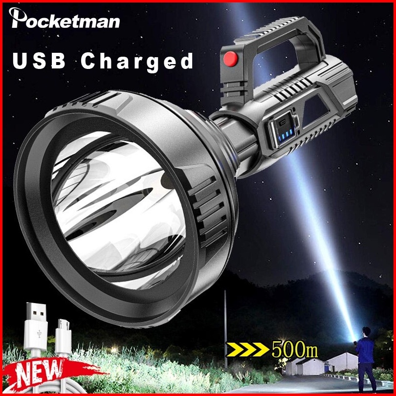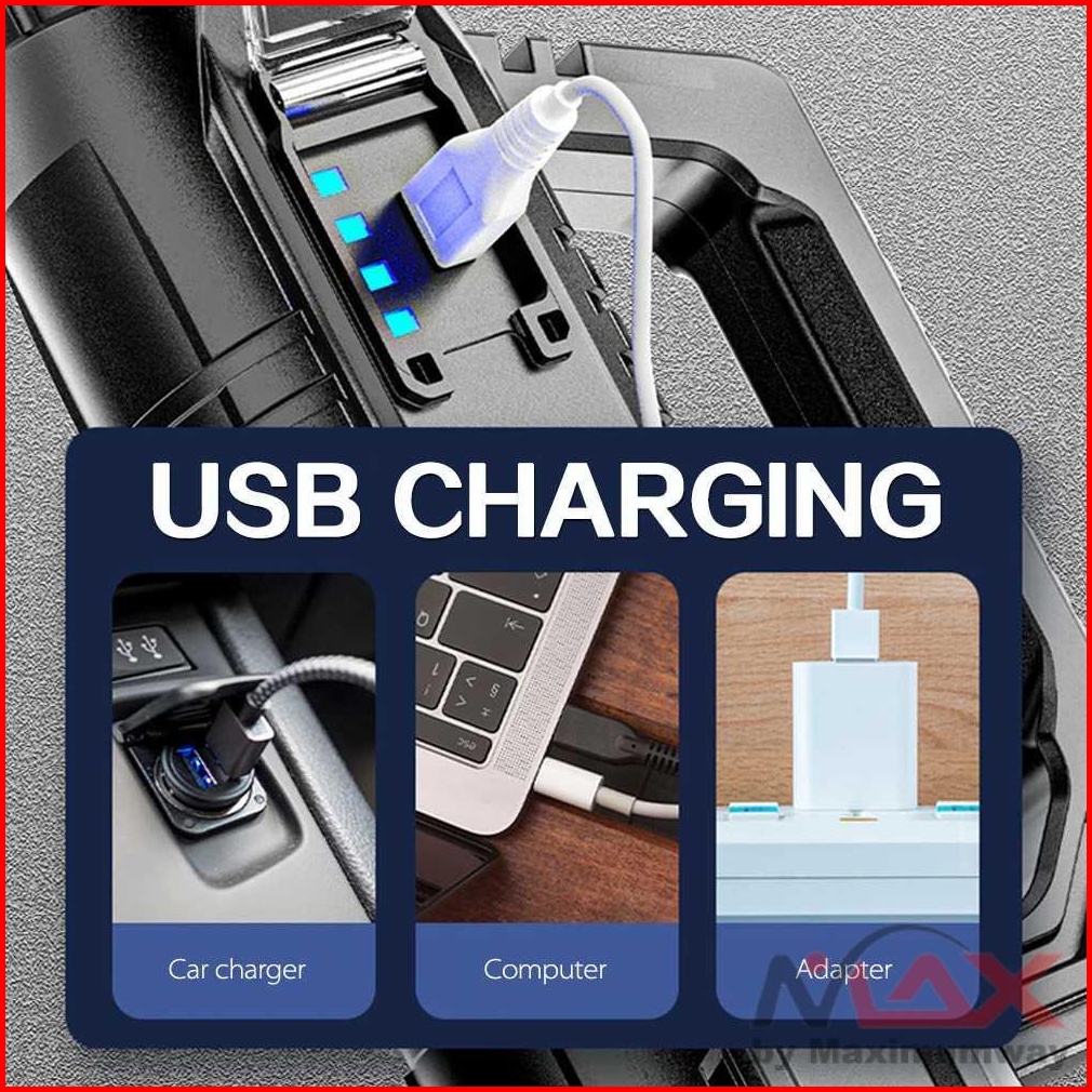 Senter Besar Usb Recharge 60000 Lumens Bisa Strobo Anti Air Jangkauan Jauh Lampu Sorot Portabel