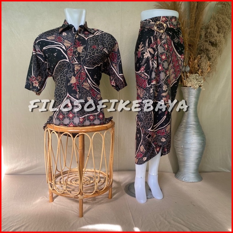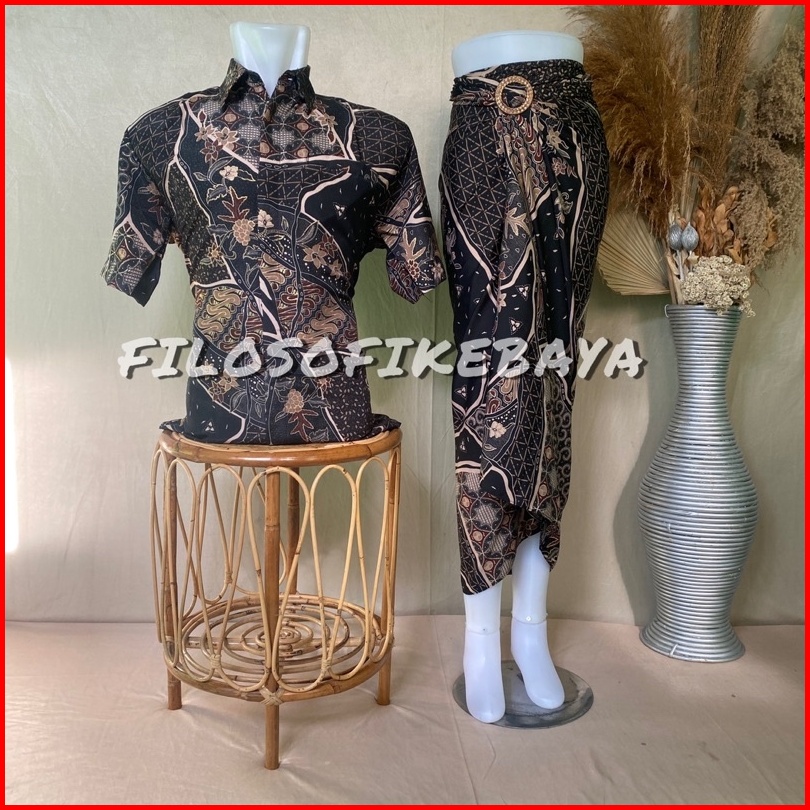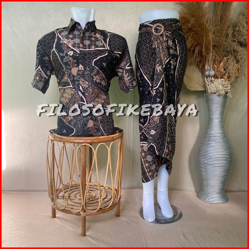 Filosofi Kebaya - Kemeja Couple Pasangan Rok Lilit Batik Lengan Pendek Rok Dan Kemeja Batik Couple Modern Baju Batik Cou