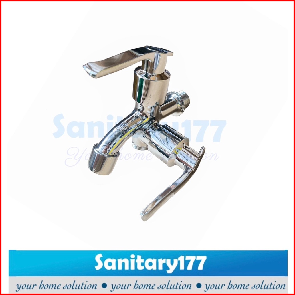 Kran Cabang Engkol Minimalis Ff- Keran Air Shower Cabang 2 Kran Double Kamar Mandi Bak Air Dobel Black Hitam Abu Grey Me