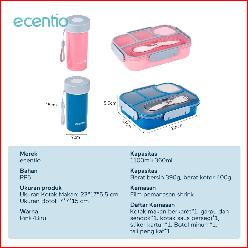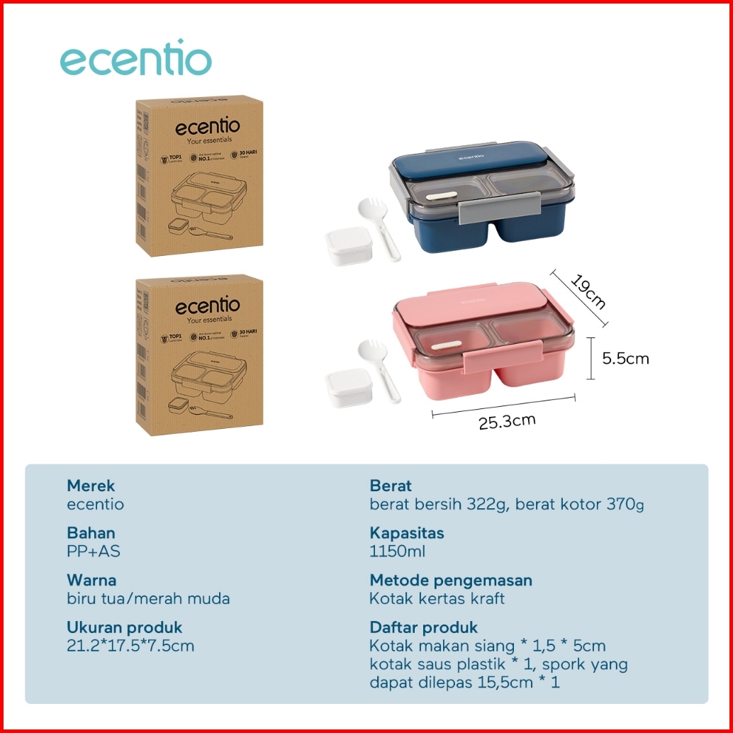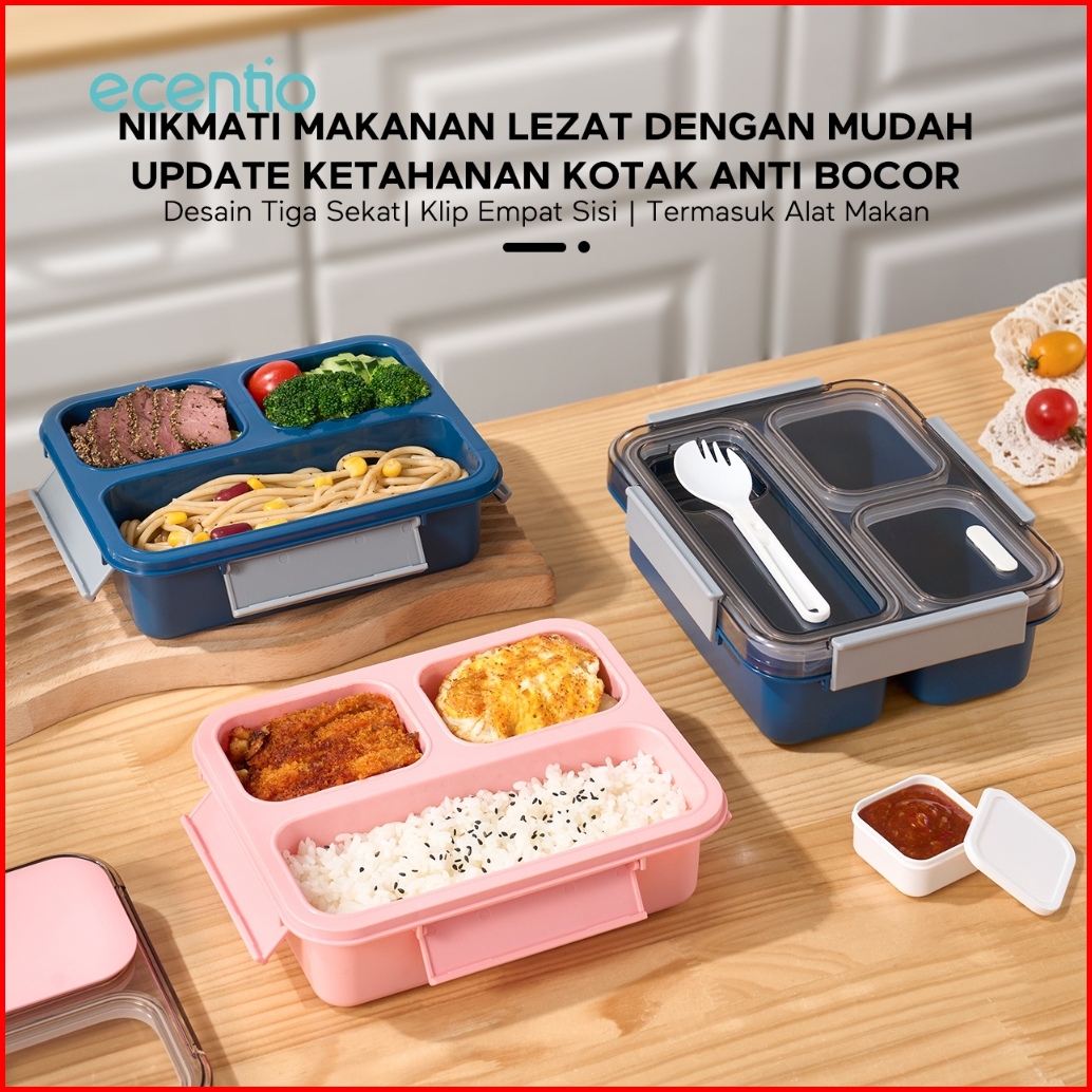 Ecentio Foodi Kotak Bekal Makan Set Anti Tumpah 1100ml Sekat 4 Dengan Sticker 1150ml Sekat 3 Bpa Free Lunch Box Set Grat