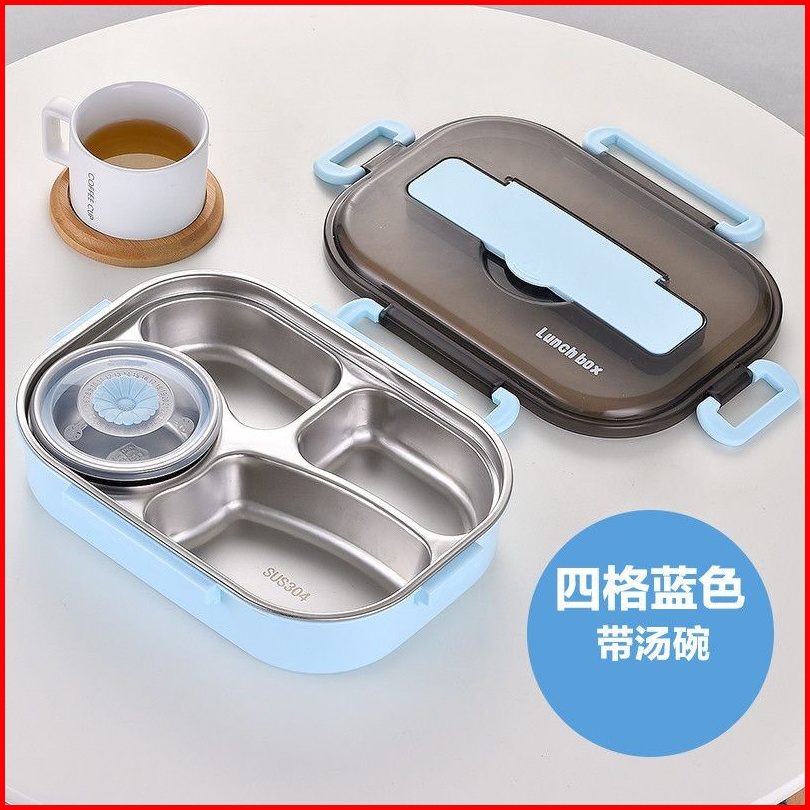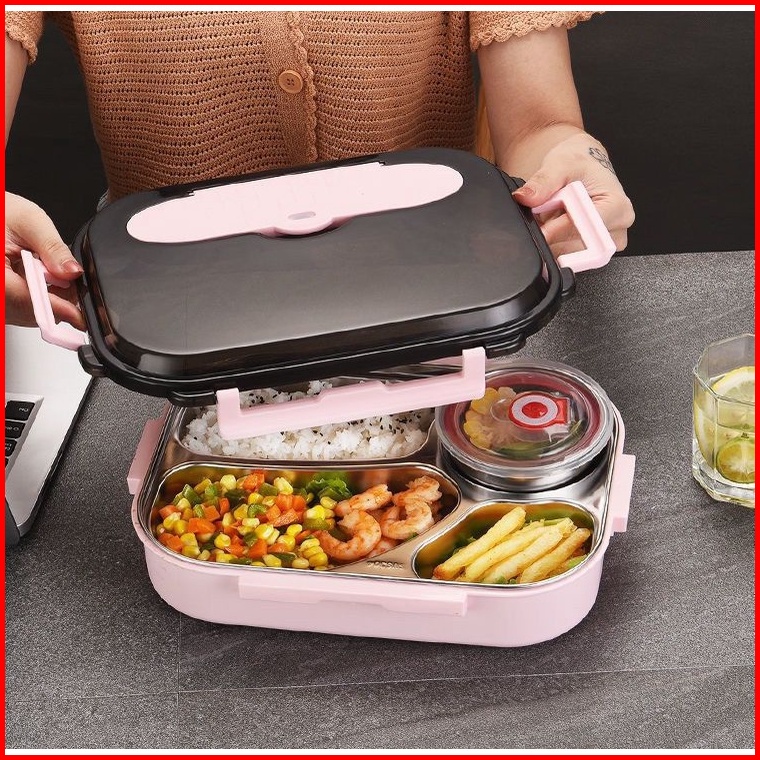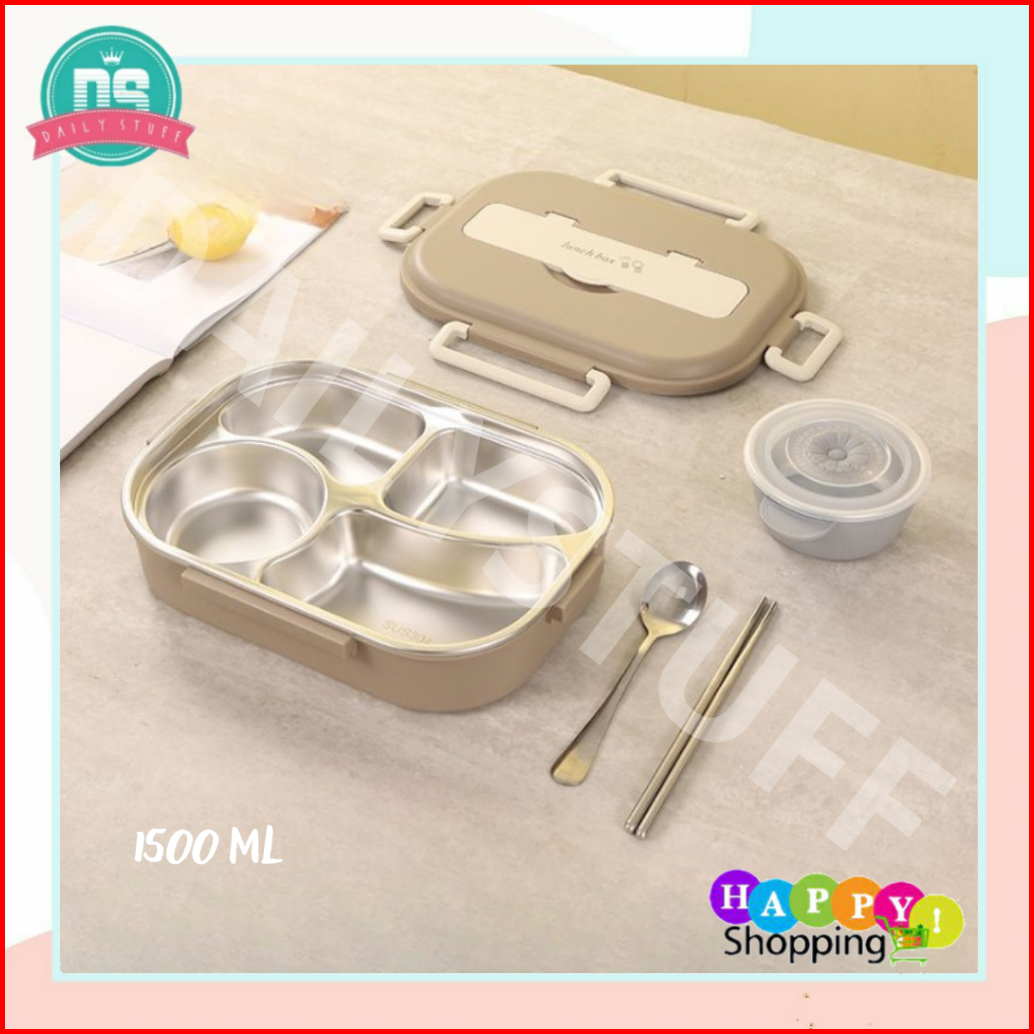Ds Ss34 Kotak Makan 4 Sekat Lunch Box Stainless 304 Tahan Panas Dan Anti Tumpah Kualitas Premium Free Sendok Sumpit