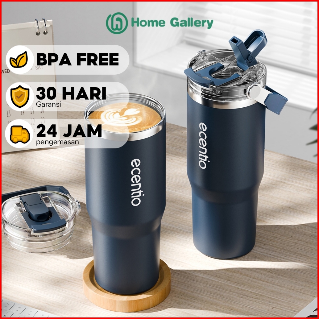 Ecentio Tumbler 900ml Mug Panas Sedotan Stainless Steel 304 Tahan Dingin 24 Jam Insulated Botol Minum Aesthetic Kopi Cup