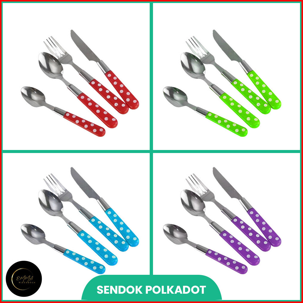 Em Sendok Set 24 Pcs Polkadot Garpu Sendok Pisau Steak