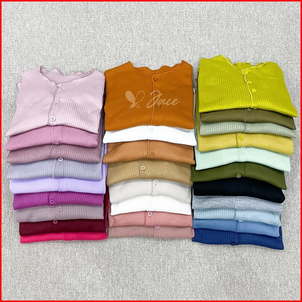 Black, White, Broken White, Silver, Grey, Oat, Cappuccino, Mustard, Gold, Caramel, Frappe, Milo, Choco, Coffee (Pramuka), Mocca, Khaki, Hazel, Blush, Pome, Scarlet (Merah Cabe), Maroon, Burgundy, Dusty, Taffy, Mauve, Taupe, Thistle, Lilac, Heather, Periwinkle, Grape, Lime, Lemon, Olive, Avocado, Moss, Armyy, Seaweed, Mint, Steel, Denim, Sapphire, Navy, RANDOM (Bkn Campur)