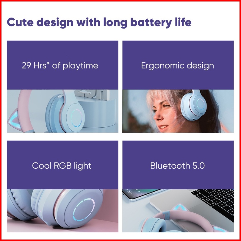 Fingertime Gaming Headset Rgb Bluetooth Wireless Earphone Headphone Dan Mic Bt029c