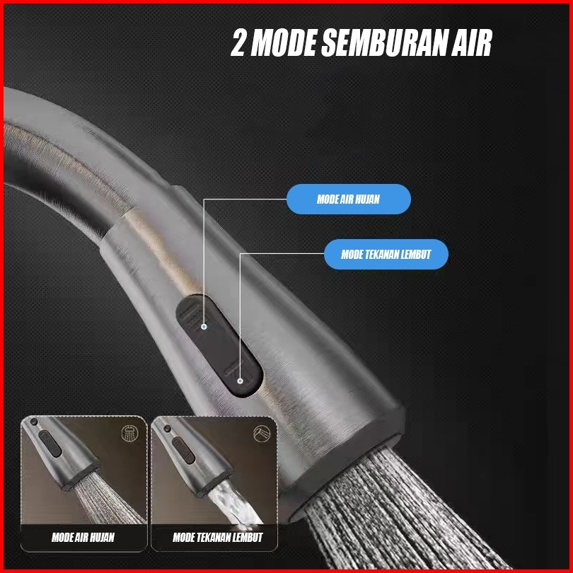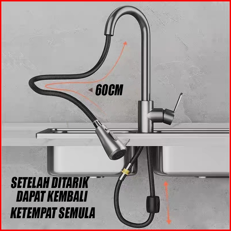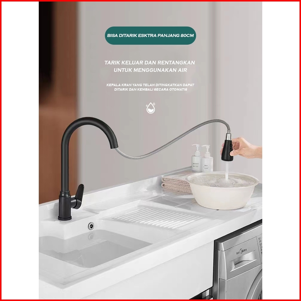 Kran Sink Mixer Tarik Stainless Sus 304 Hitam Kran Flexible Tarik Curi Piring Stainless Hitam Sus