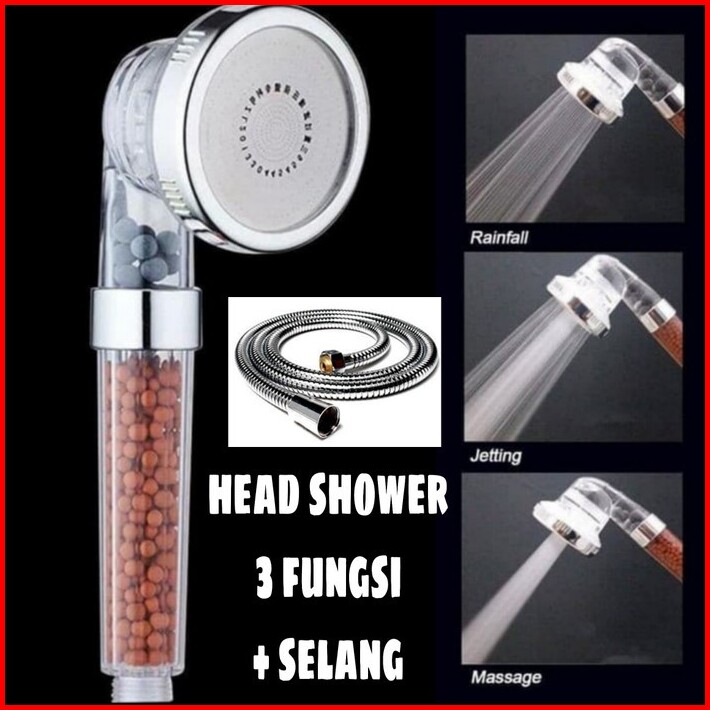 Kepala Shower Head Shower Ion Filter 3 Fungsi Selang 140cm