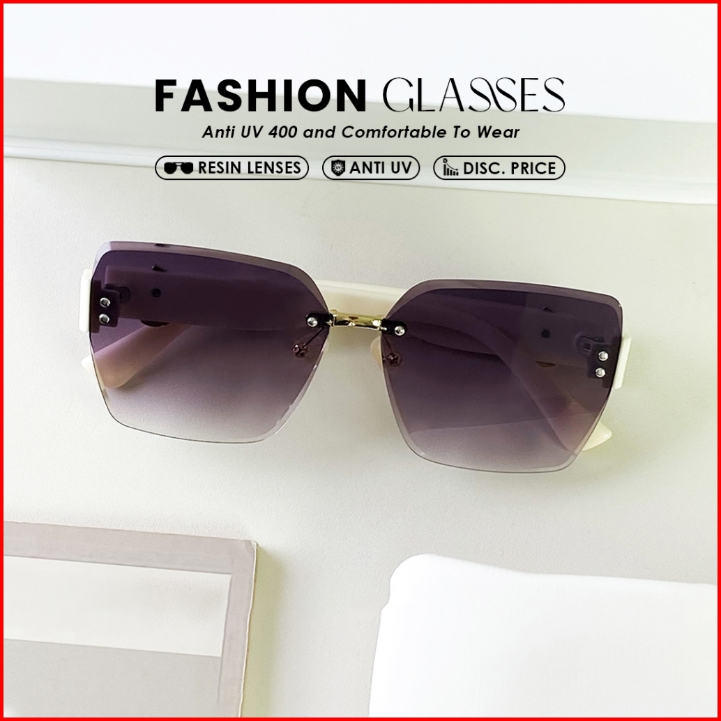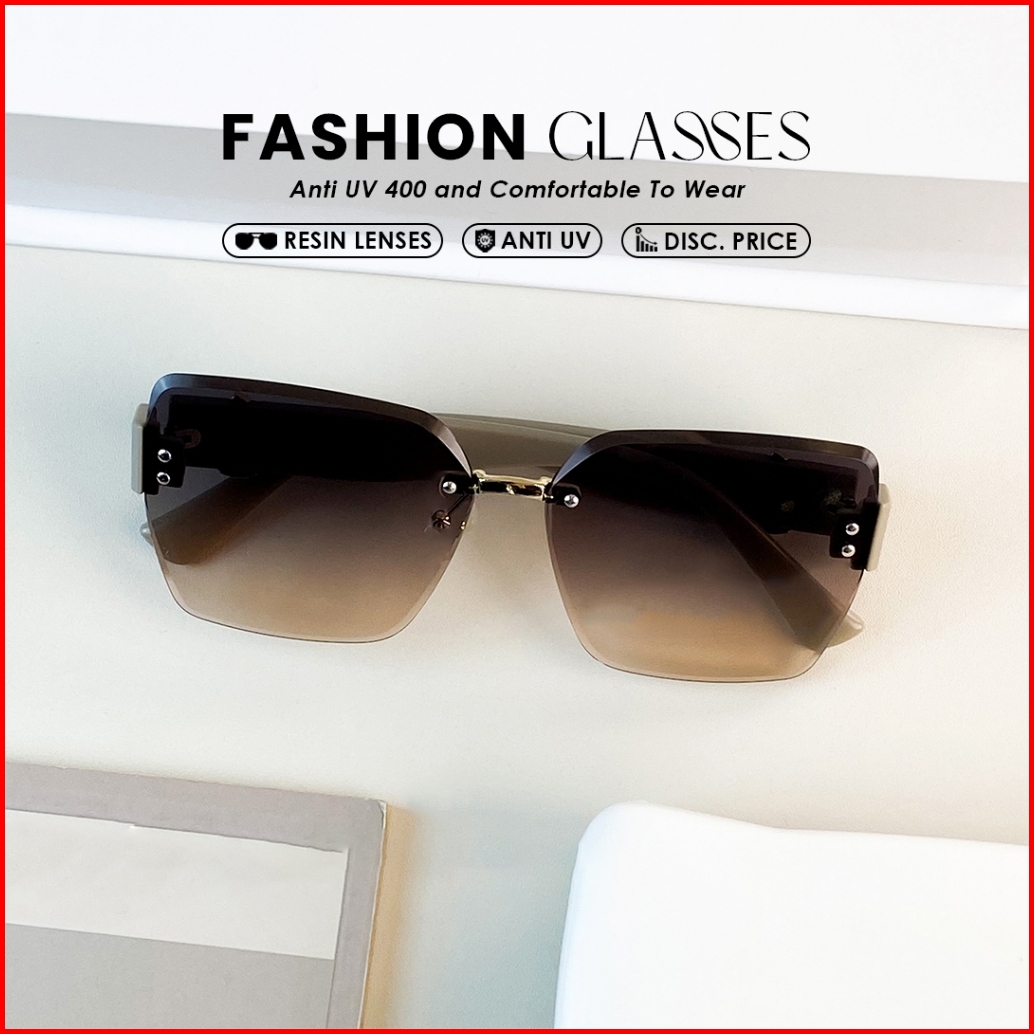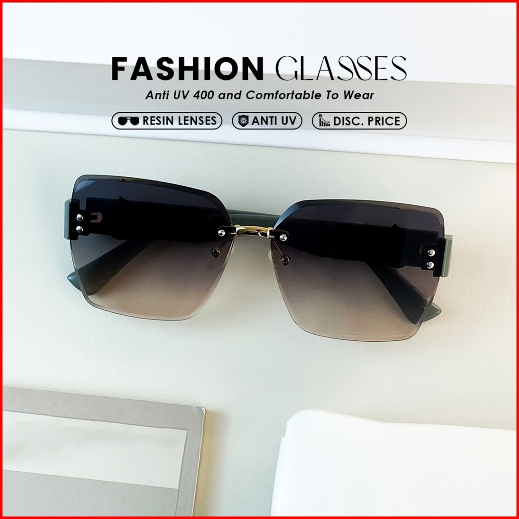 Kacamata Hitam Sunglasses Frameless Style Geometri Bahan Metal Tr-90 Wanita Modern Beauty Miror B3045
