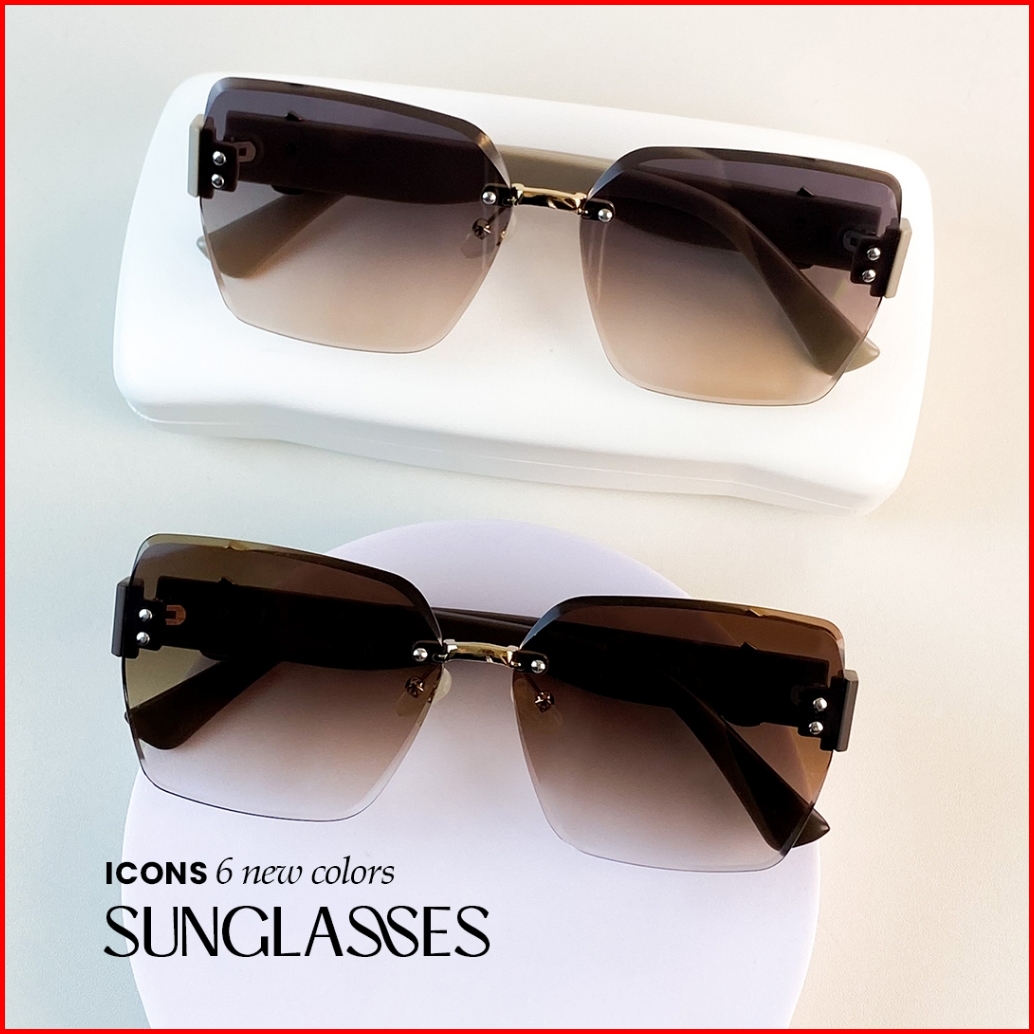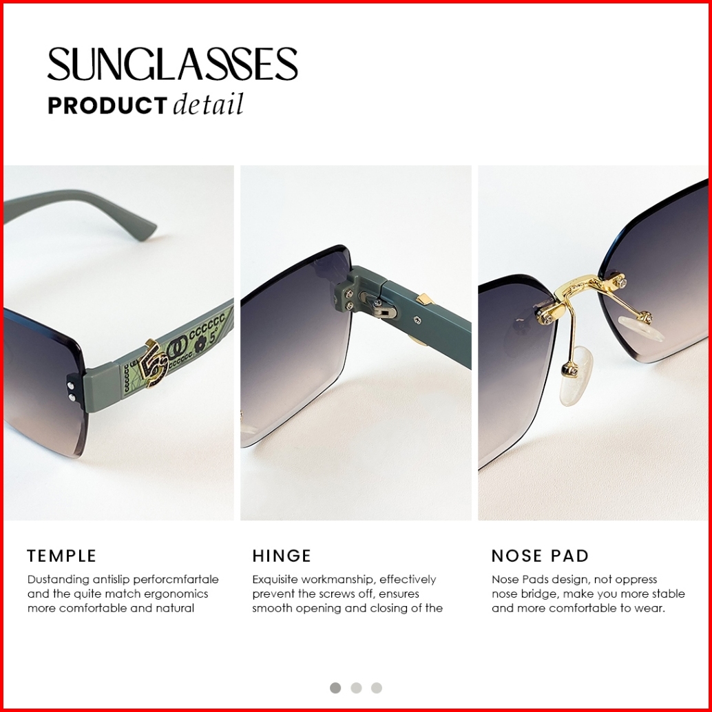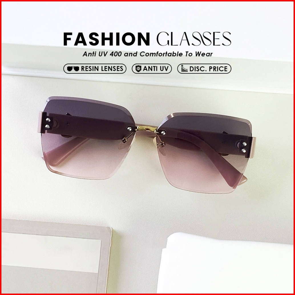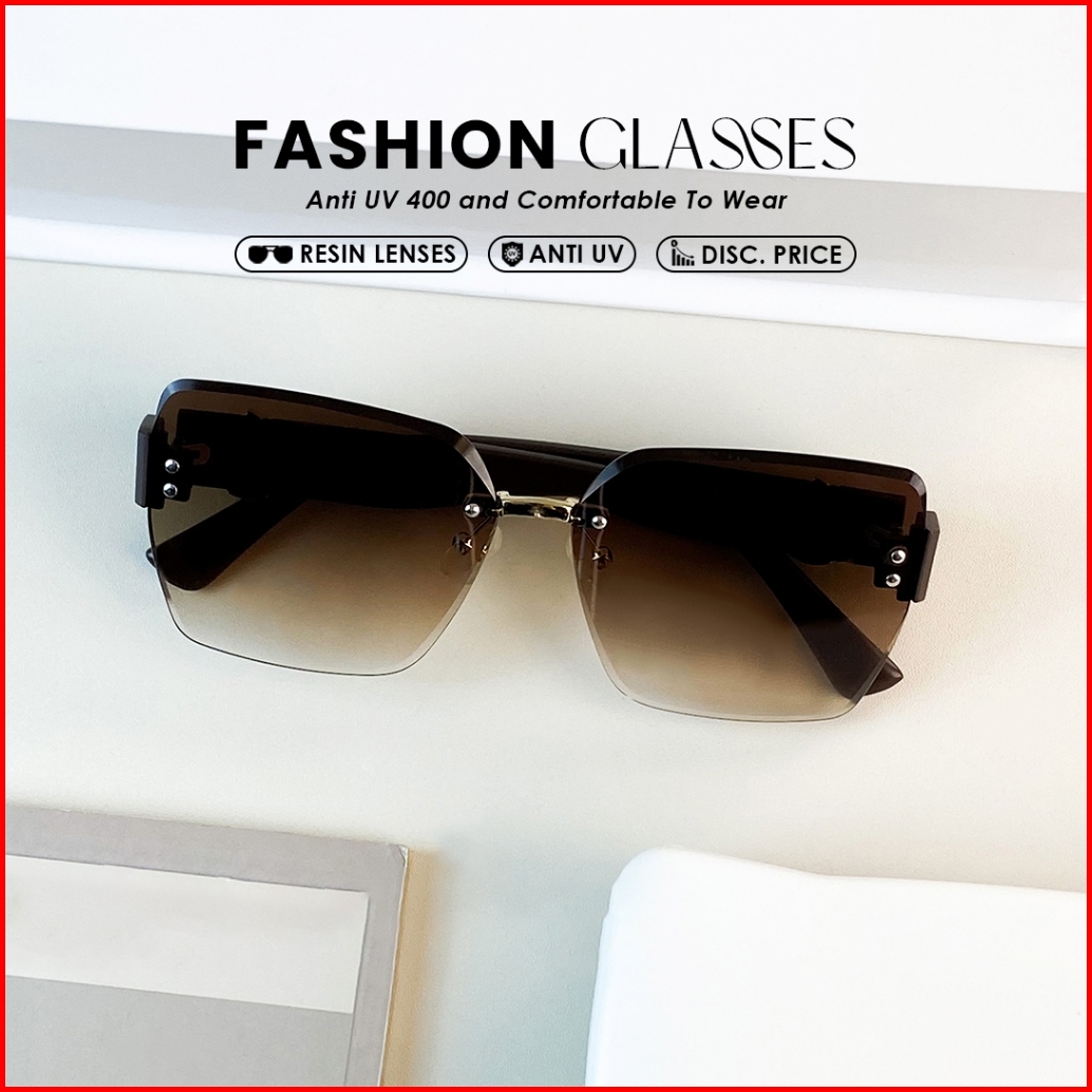 Kacamata Hitam Sunglasses Frameless Style Geometri Bahan Metal Tr-90 Wanita Modern Beauty Miror B3045