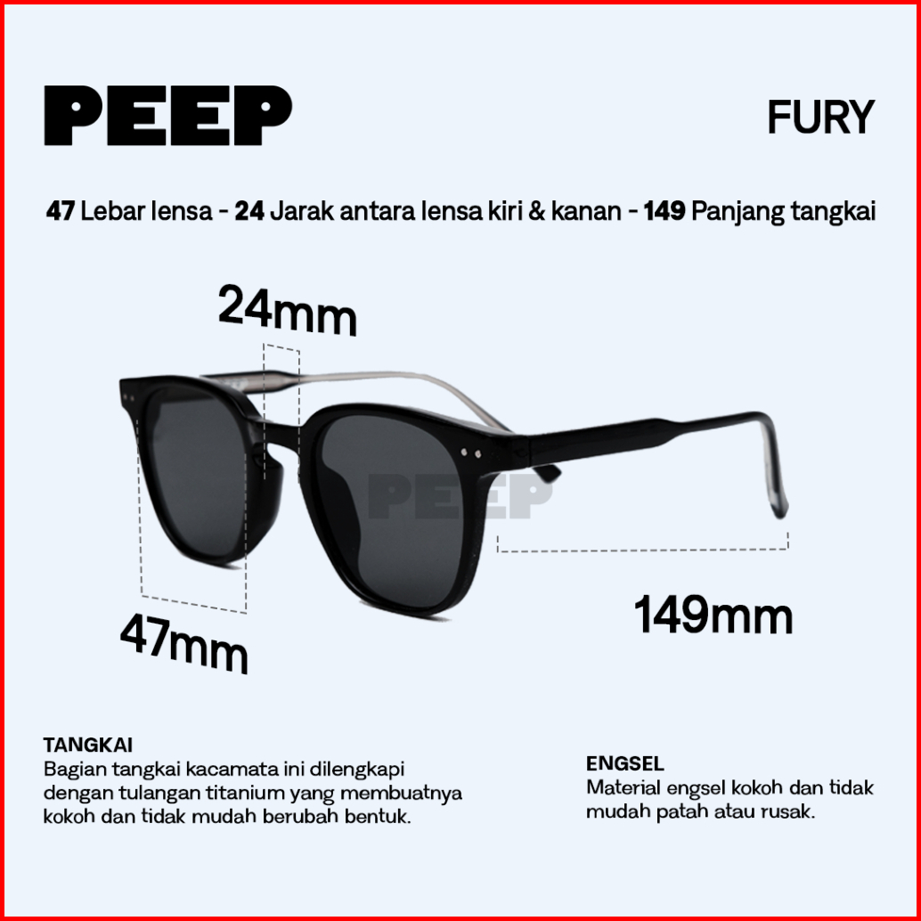Peep Eyewear - Fury Frame Kacamata Hitam Sunglasses Unisex Pria Wanita