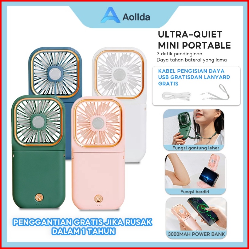 Aolida Kipas Angin Mini 5000mah Kapasitas Besar Kipas Angin Portable Mini Model Gantung Leher 3-speed Angin Kencang Kipa