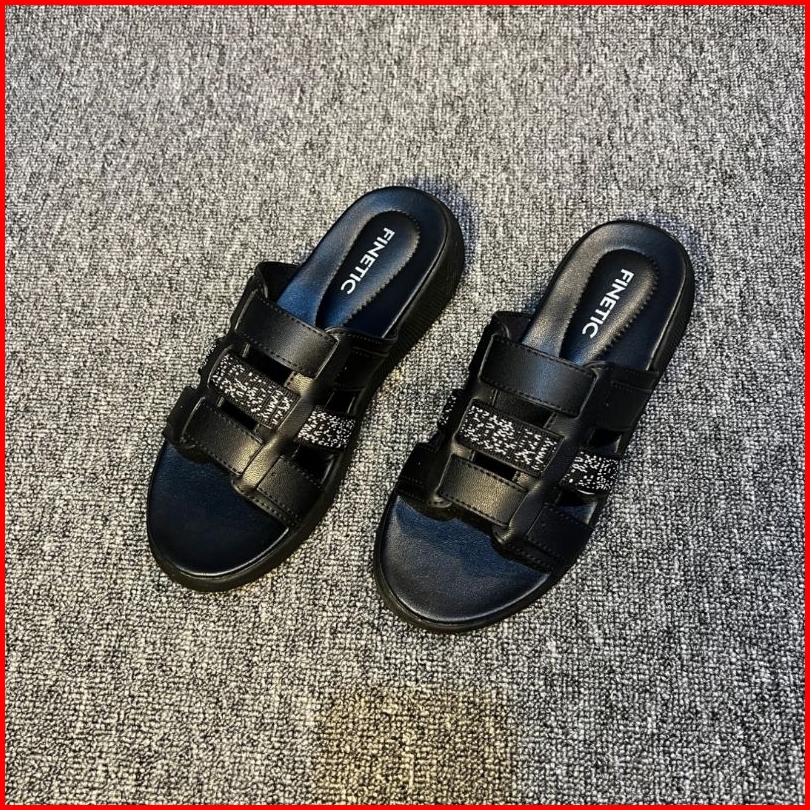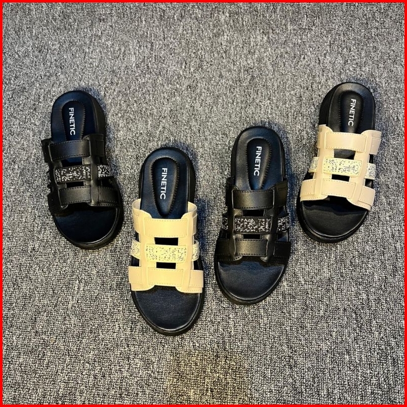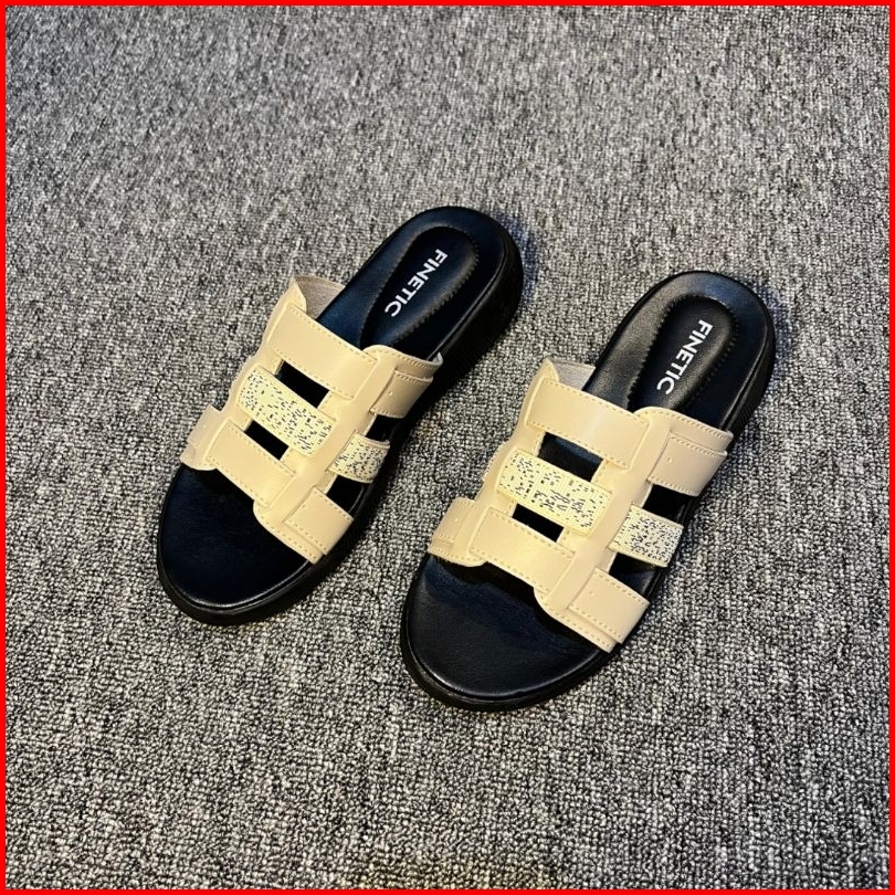 Finetic Sandal Slop Wanita Kekinian Platform Sendal Wedges Rajut Hak Tinggi 3 Cm Aqella Series Terbaru