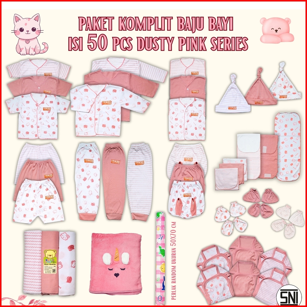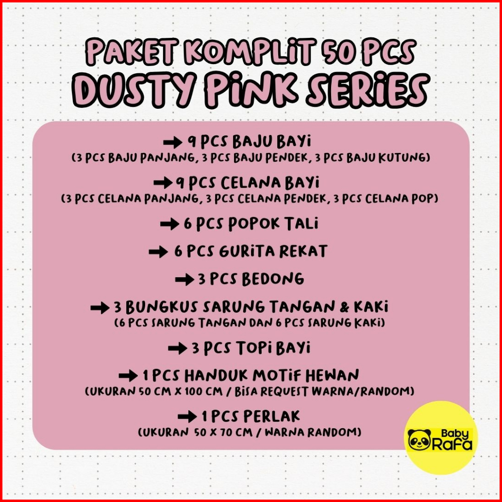 50 Pcs Paket Hemat Bundling Baju Bayi Baru Lahir Setelan Newborn 0 Sd 3 Bulan Serian Pink Dusty
