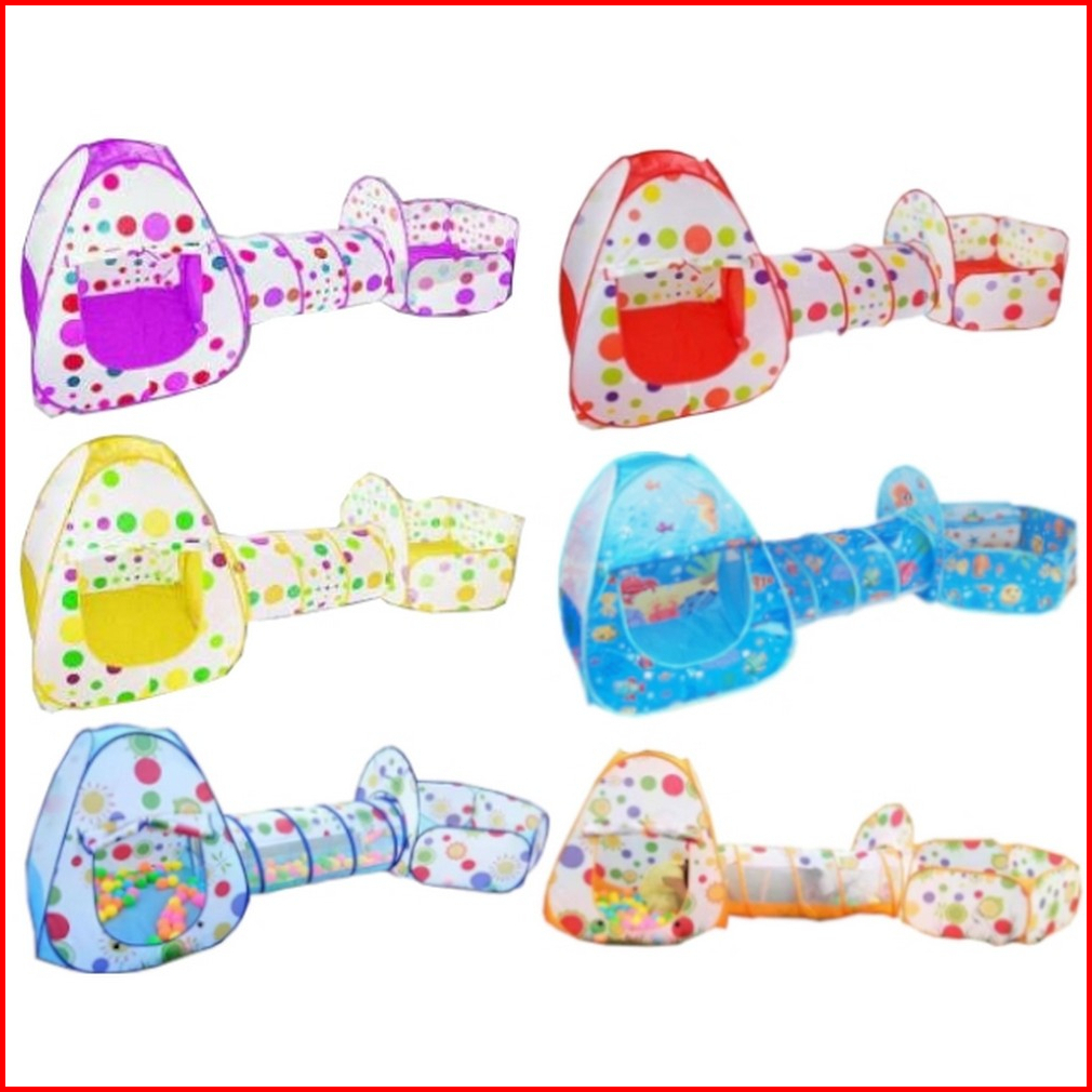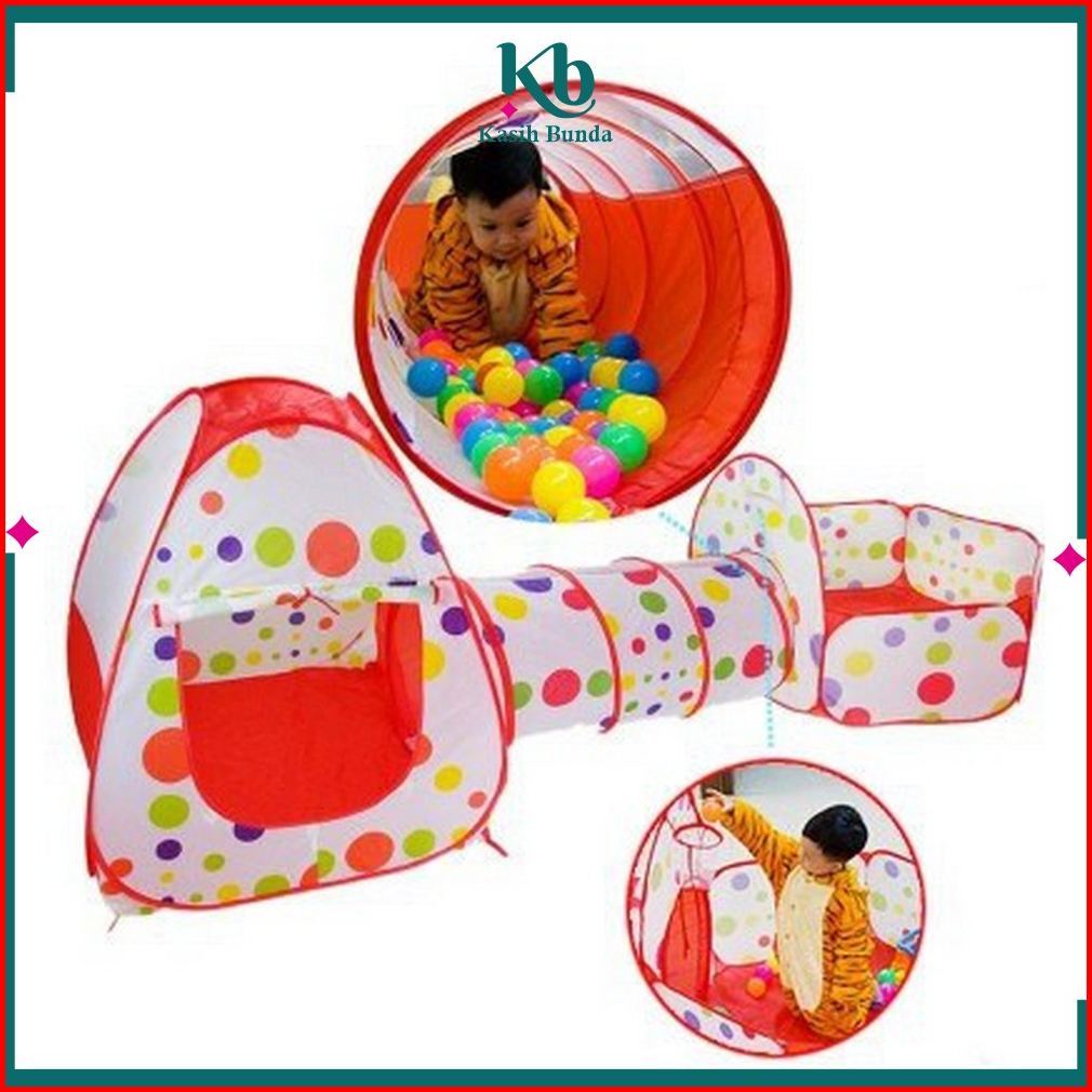 Tenda Terowongan Mainan Anak 4in1 Dengan Kolam Dan Ring Basket Mainan Keranjang Mandi Bola Anak Tenda Anak Bunda M6