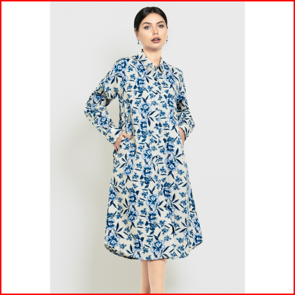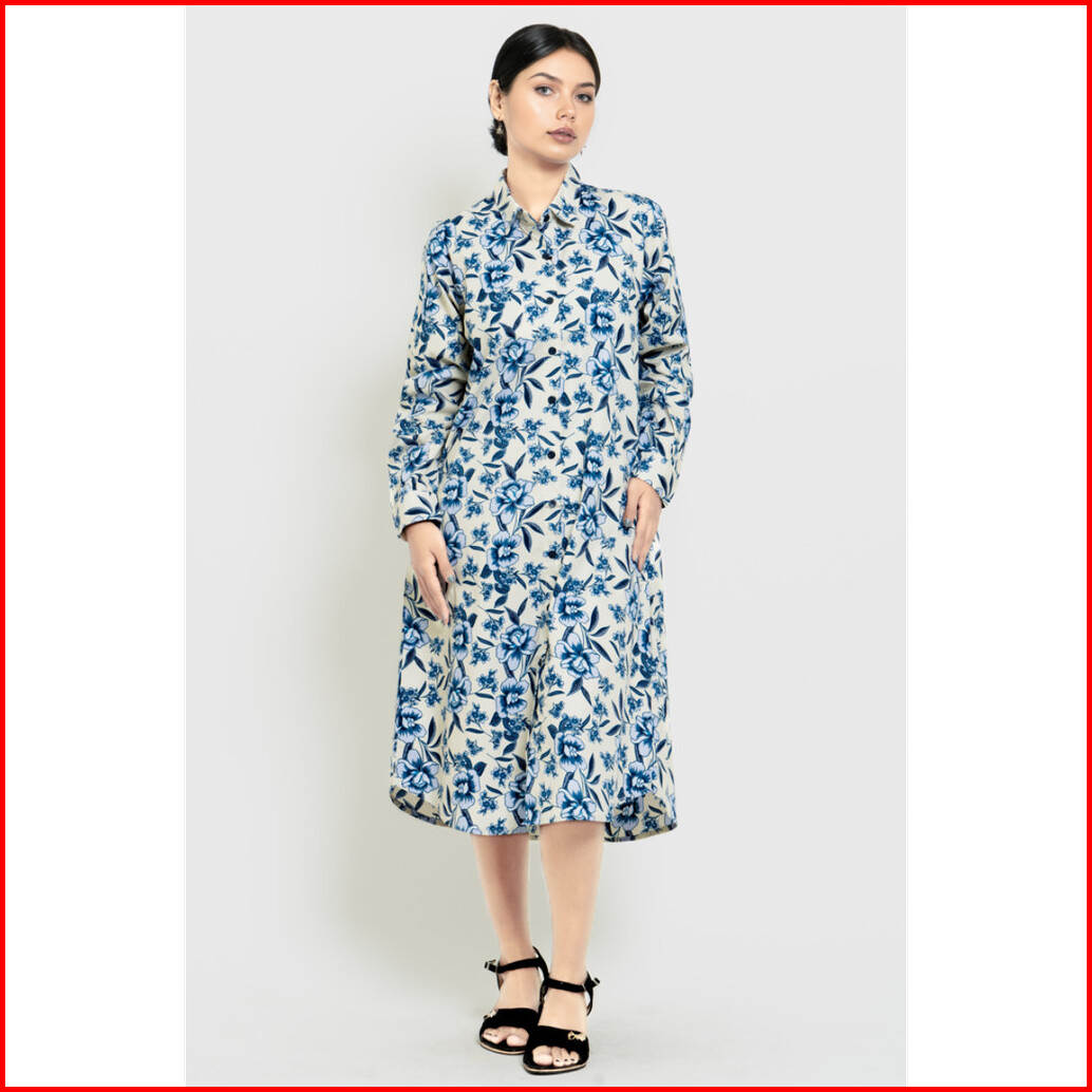 Puricia By Hassenda Dress Wanita Motif Bunga Nolana Baby Blue - Pdf25792ckt