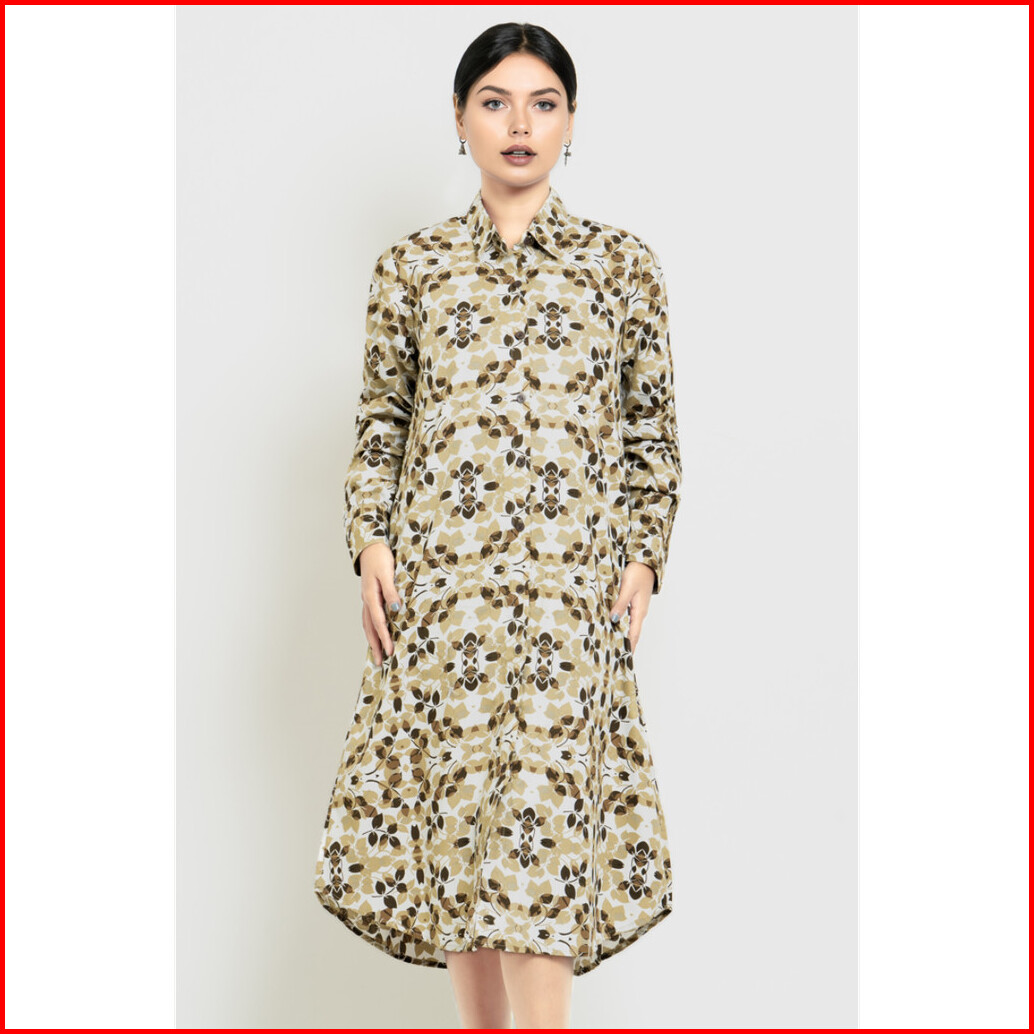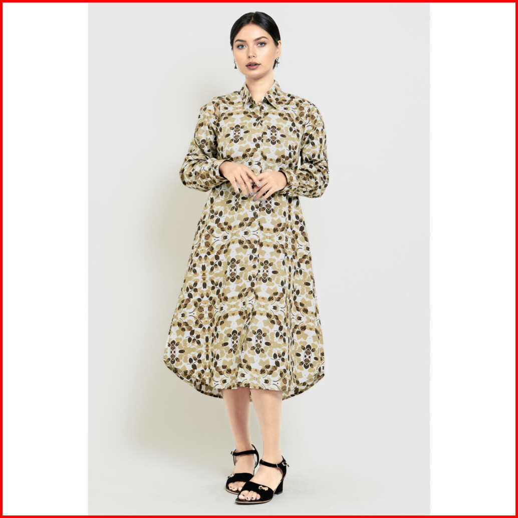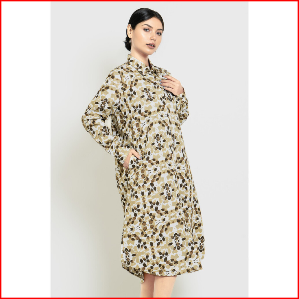 Puricia By Hassenda Dress Wanita Motif Bunga Nolana Beige - Pdf25793ckt