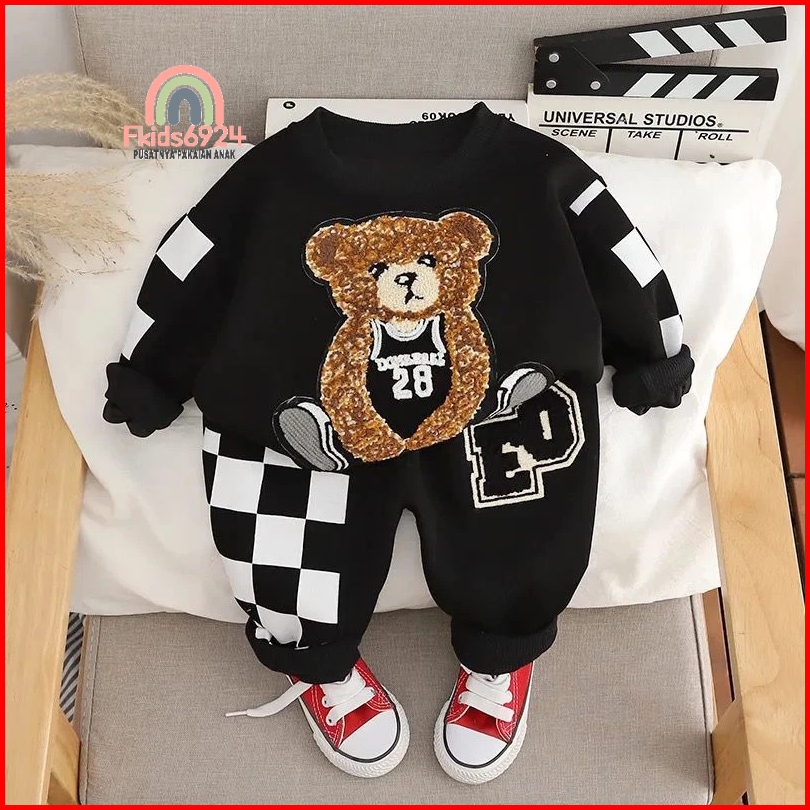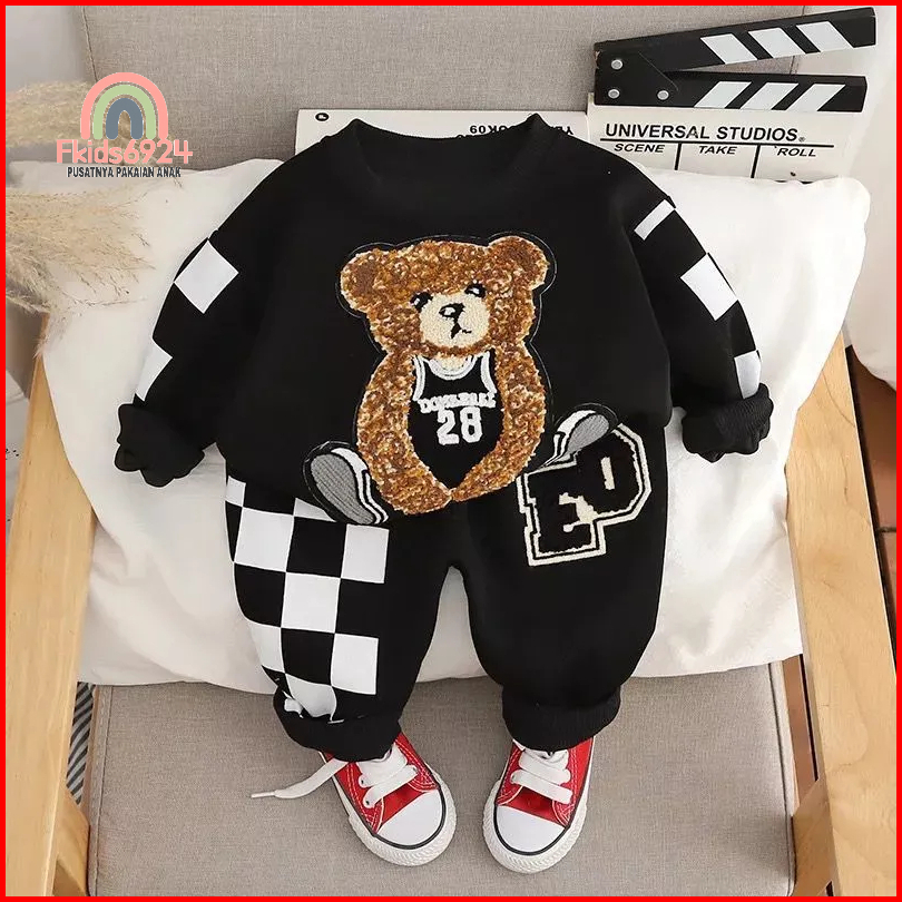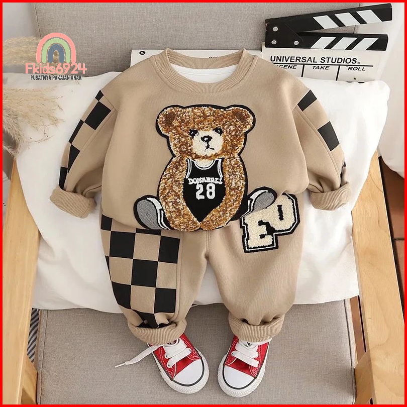 Sweater Anak Lucu Motif Bear Dan Celana Setelan Baju Anak Laki Laki Perempuan 1-5 Tahun