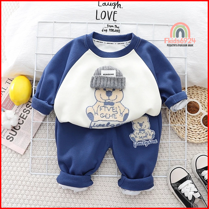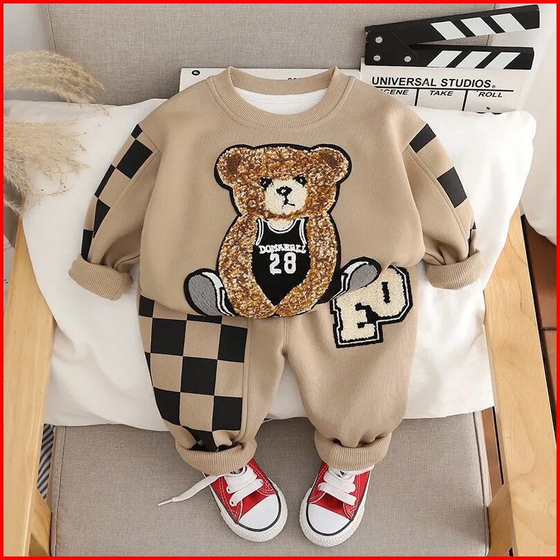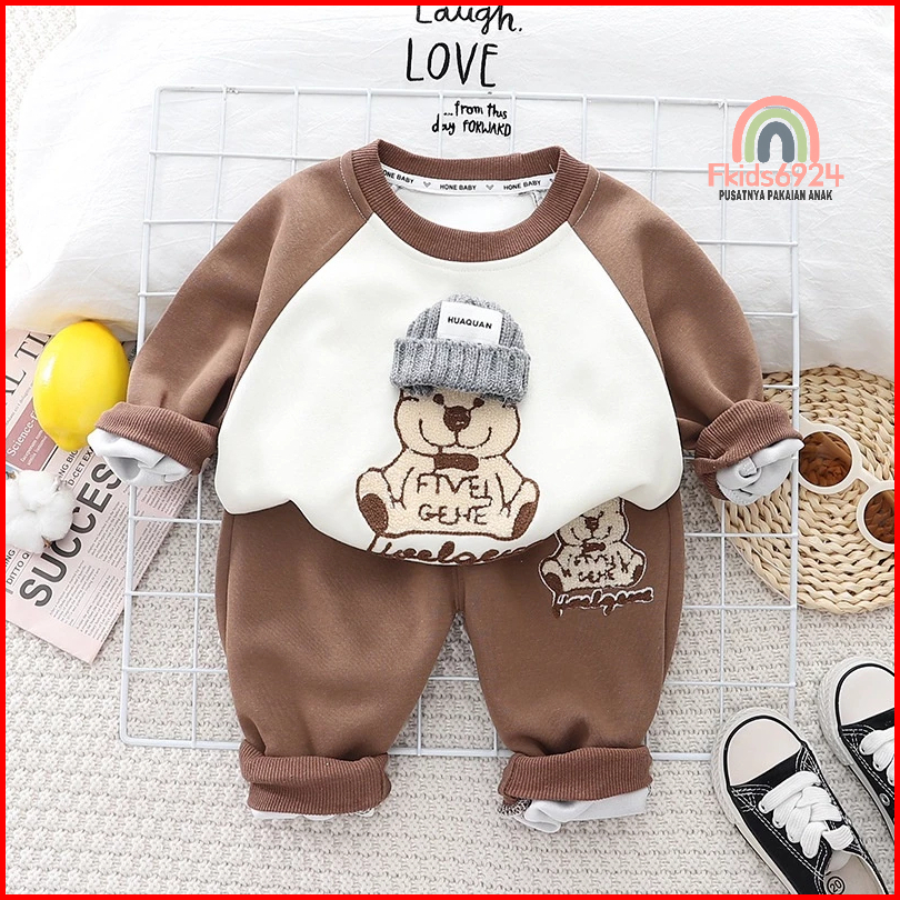 Baju Anak Laki 1-5 Tahun Setelan Sweater Tebal Lucu Musim Dingin Motif Beruang