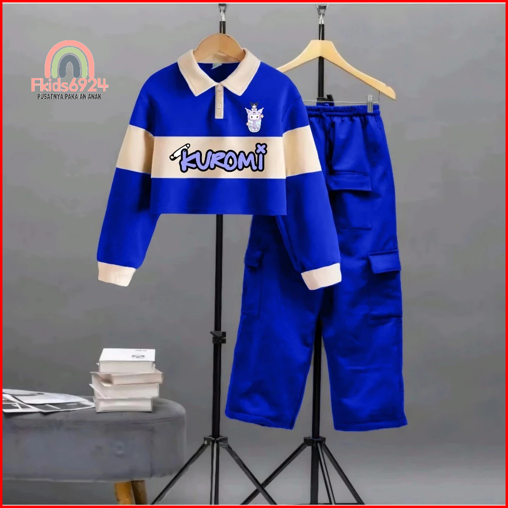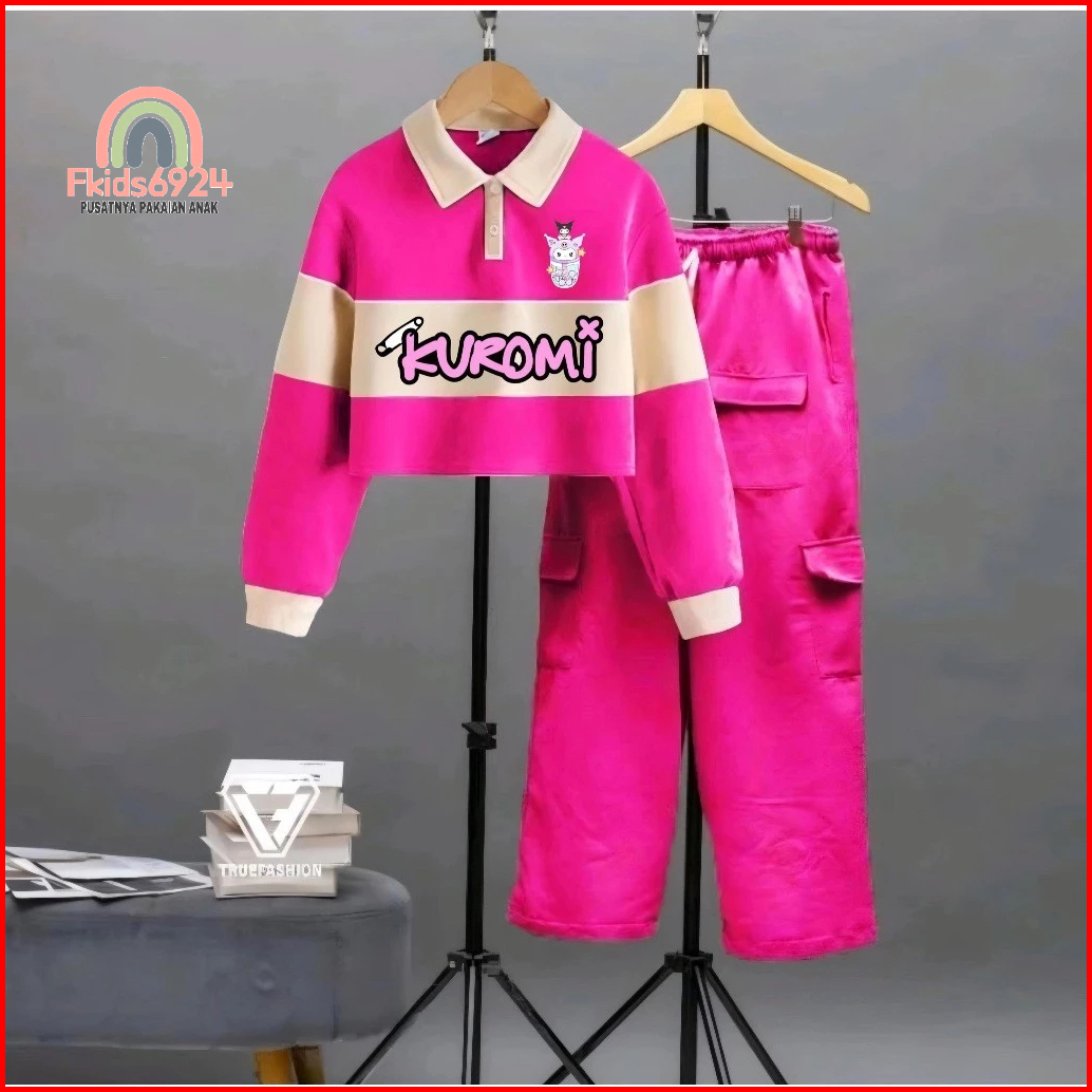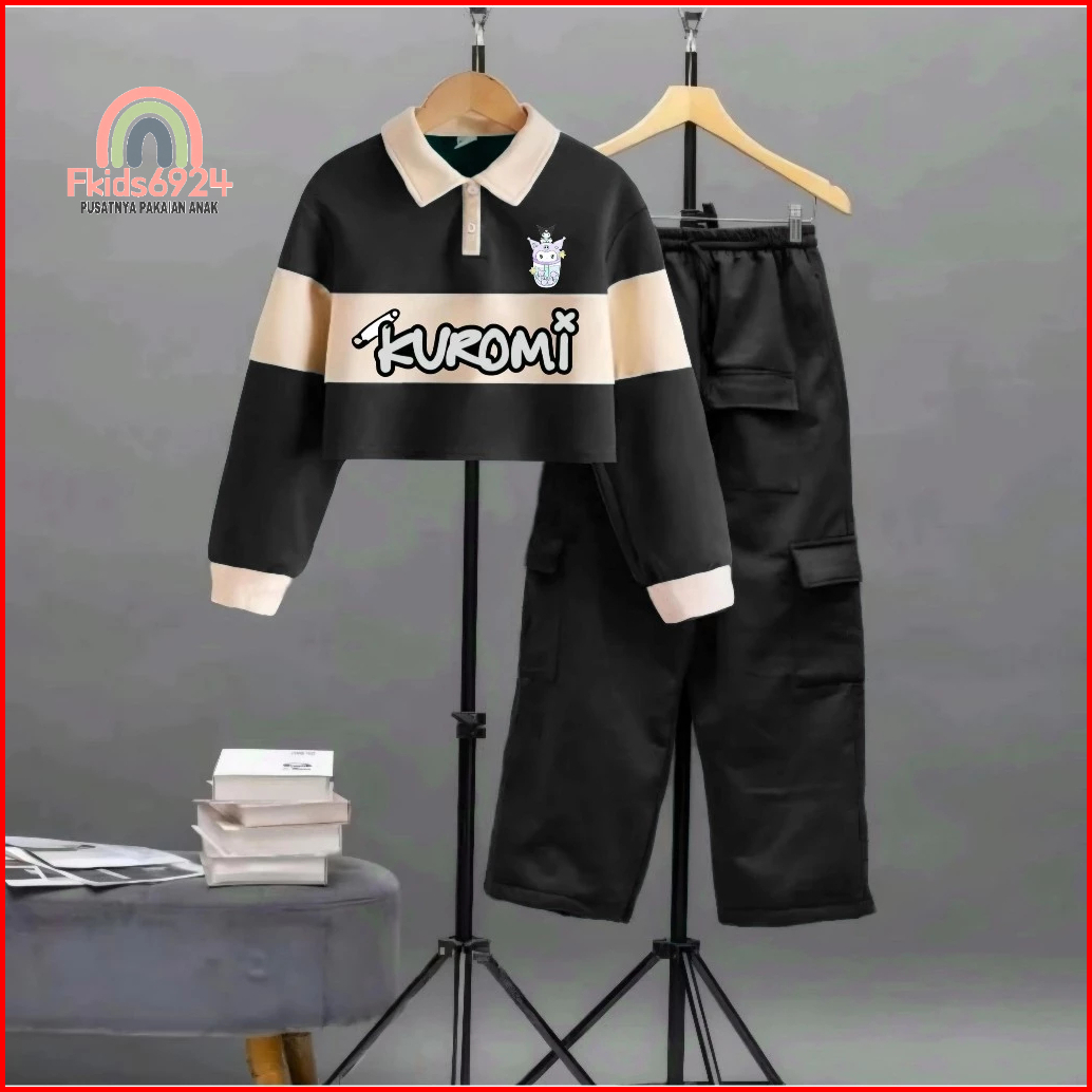 Setelan Terlaris Anak Perempuan Model Kuromi Setrip Kargo Untuk Anak 2-12 Tahun Setelan Anak Murah